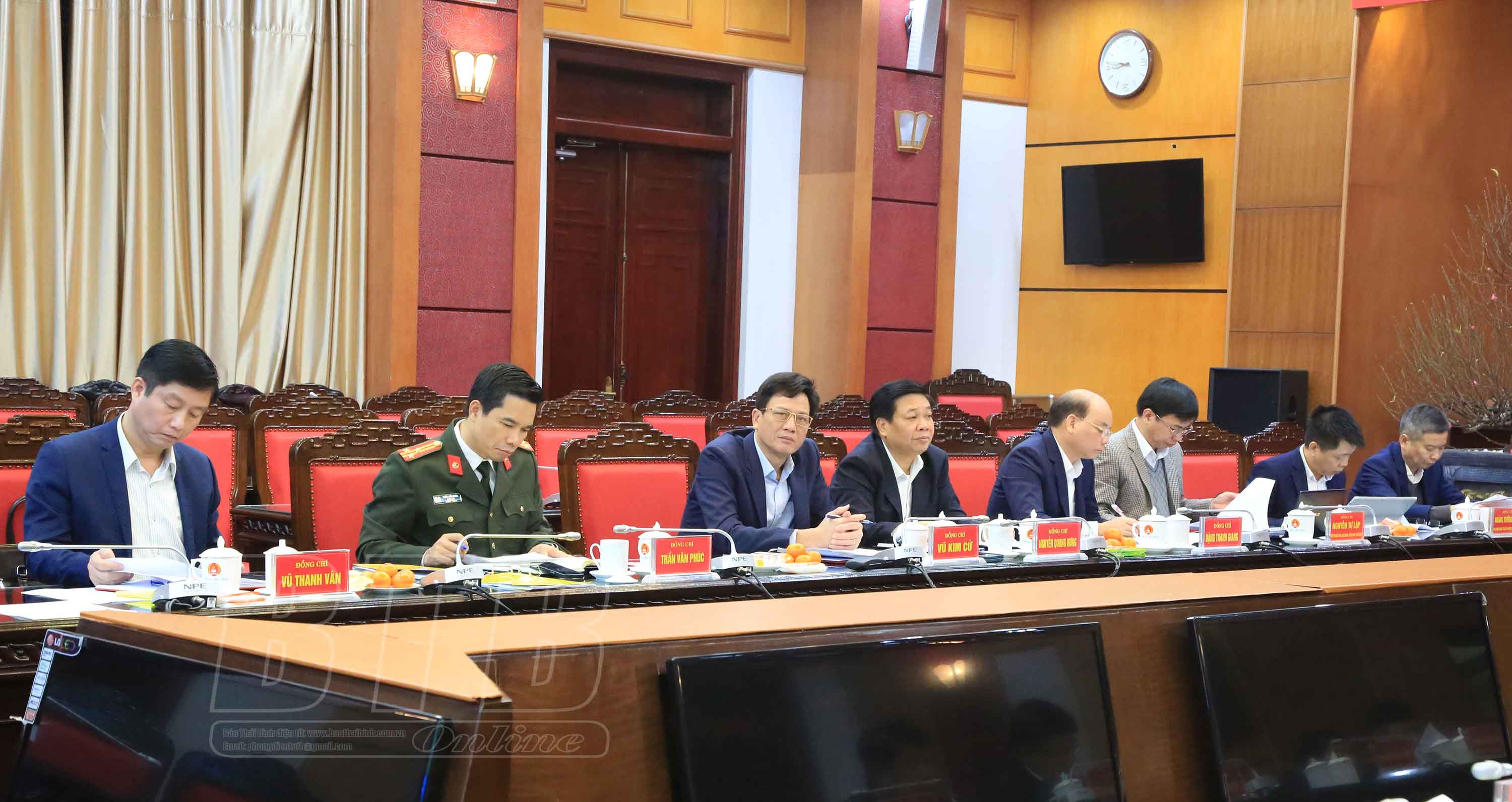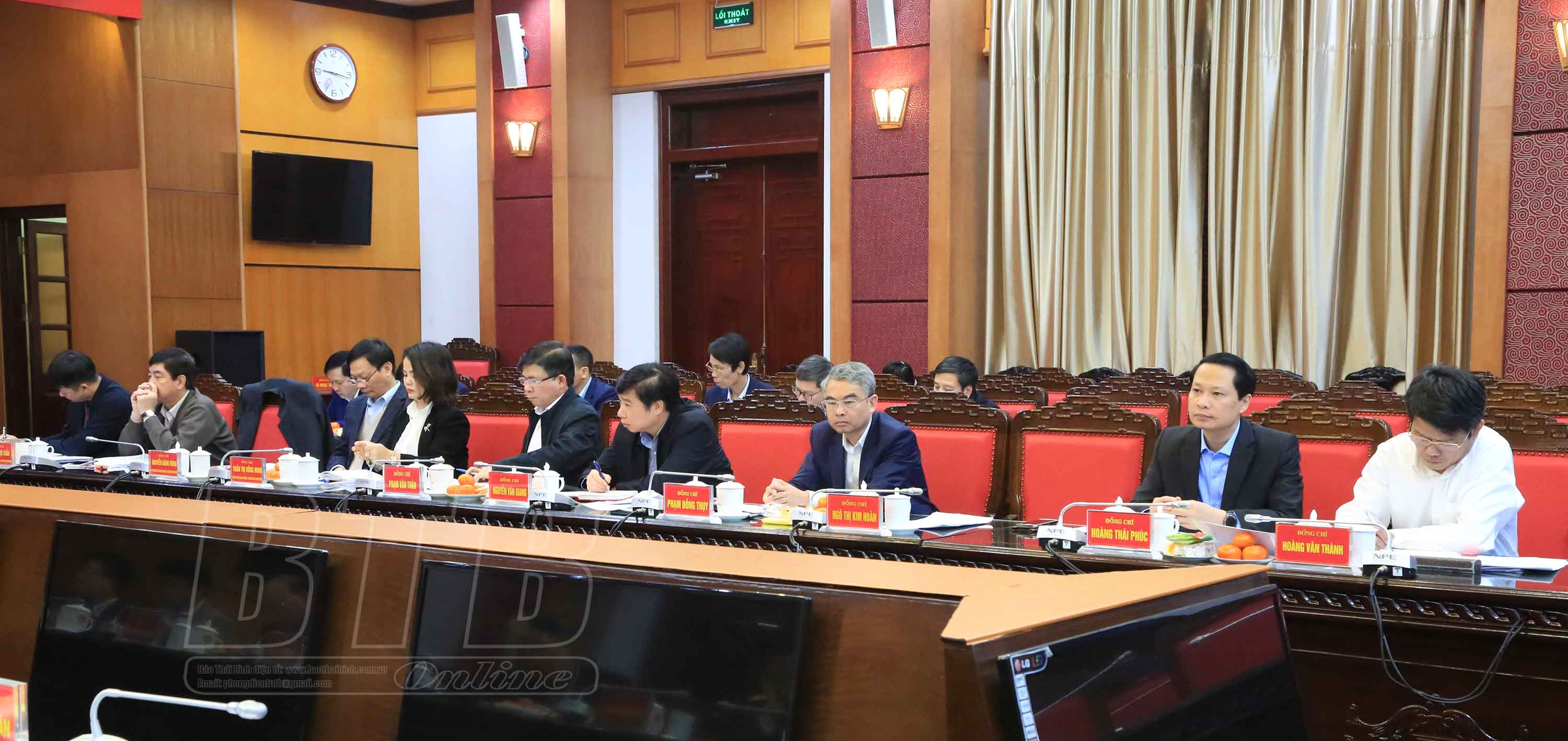 Các đồng chí: Ngô Đông Hải, Ủy viên Ban Chấp hành Trung ương Đảng, Bí thư Tỉnh ủy; Nguyễn Tiến Thành, Phó Bí thư thường trực Tỉnh ủy, Chủ tịch HĐND tỉnh; Nguyễn Khắc Thận, Phó Bí thư Tỉnh ủy, Chủ tịch UBND tỉnh chủ trì hội nghị. Đại diện các ban Đảng trung ương dự hội nghị.