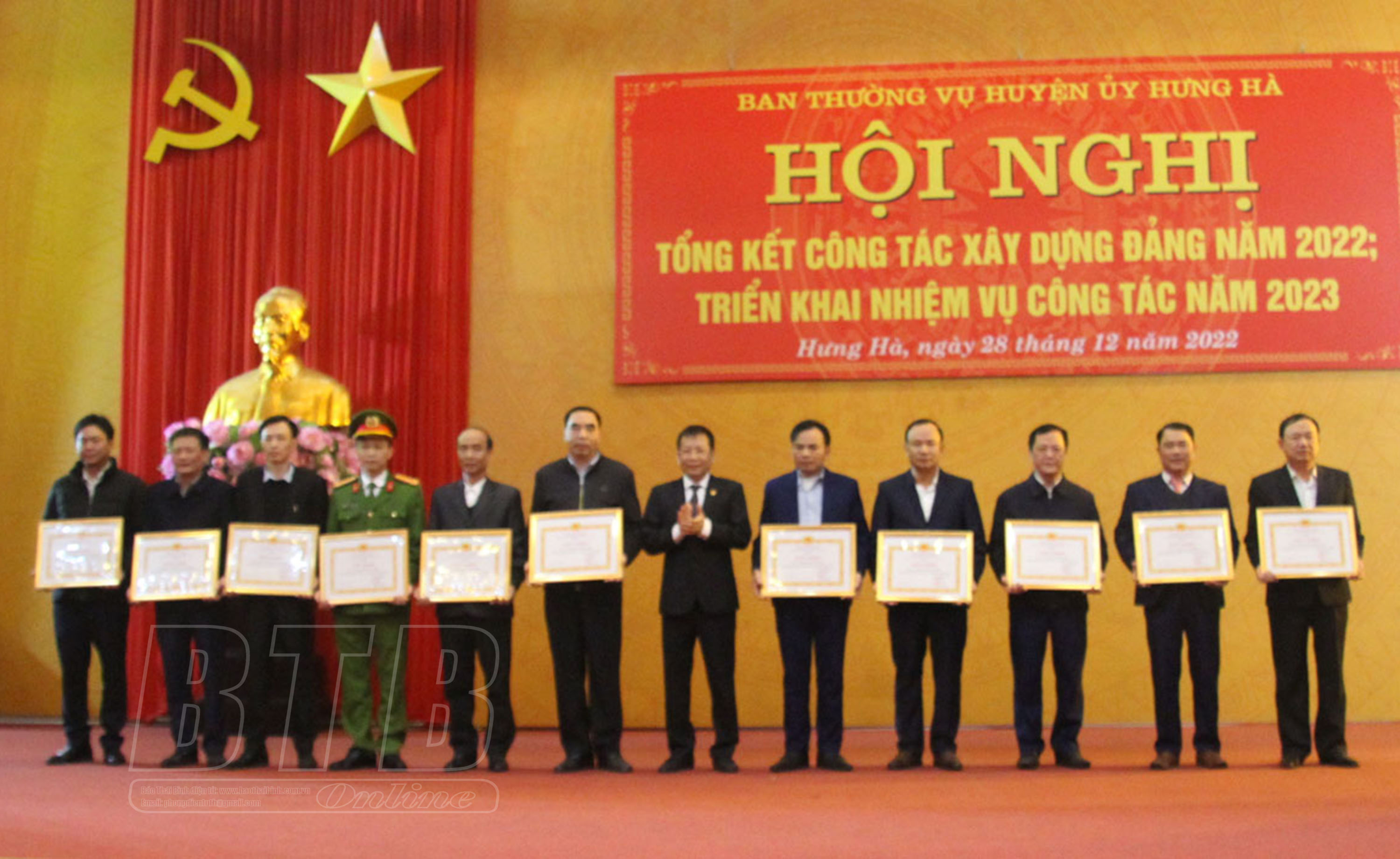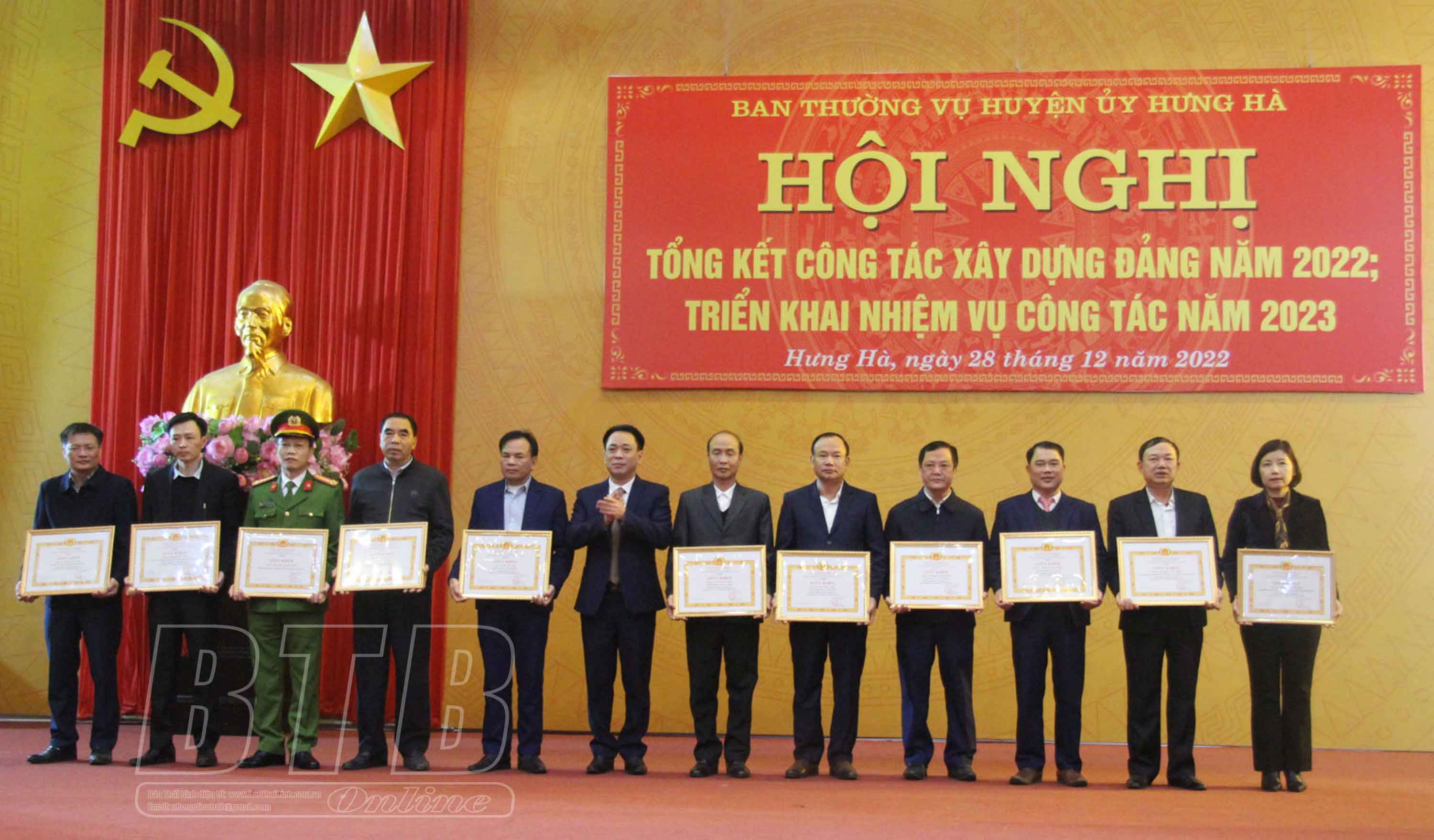 Lãnh đạo Huyện ủy Hưng Hà tặng giấy khen cho các tập thể, cá nhân có thành tích xuất sắc trong năm 2022.