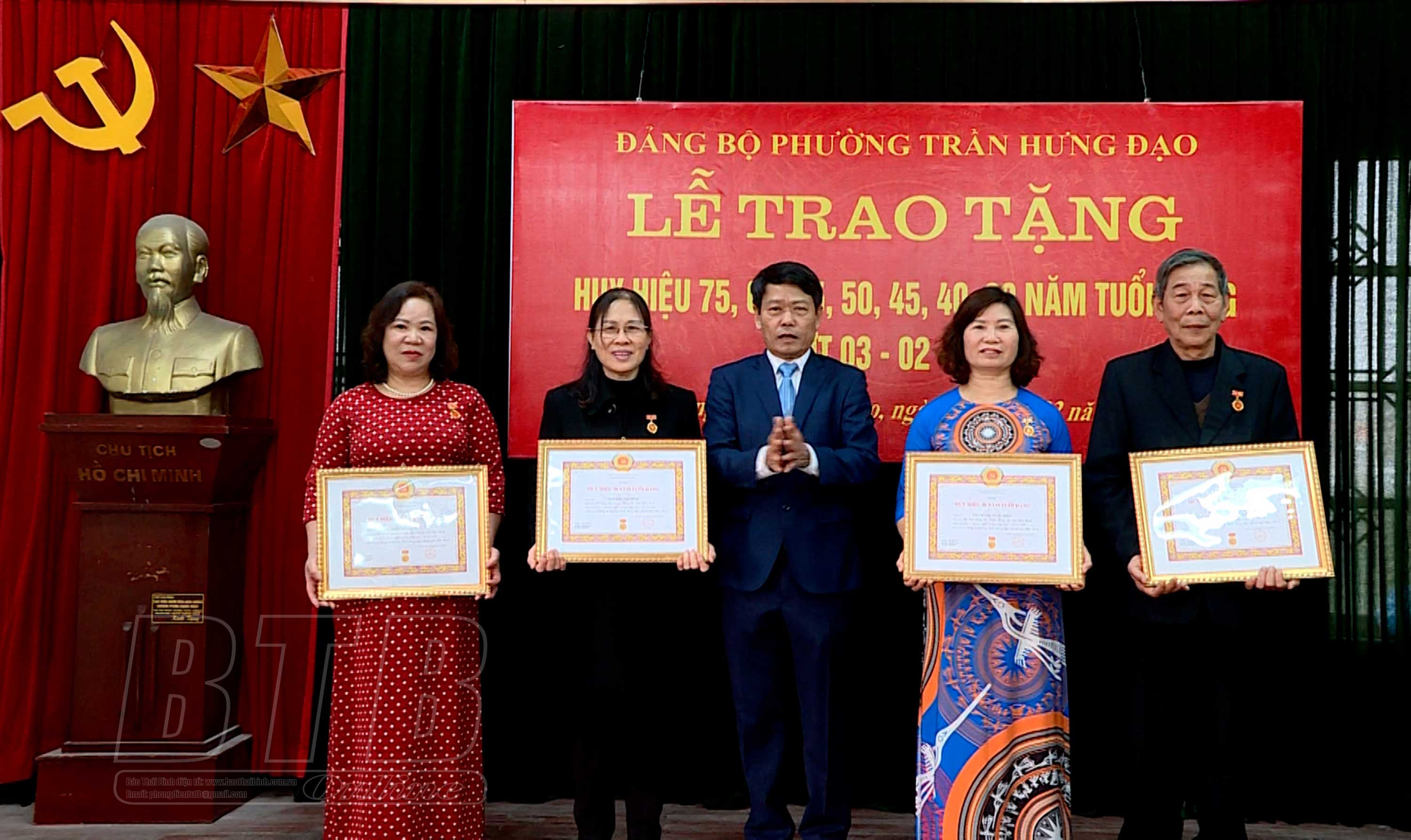 Đảng bộ phường Trần Hưng Đạo đợt này có 26 đảng viên được trao tặng Huy hiệu Đảng. Trong đó, 1 đồng chí 75 năm tuổi Đảng, 3 đồng chí 60 năm, 3 đồng chí 55 năm, 5 đồng chí 50 năm, 3 đồng chí 45 năm, 6 đồng chí 40 năm và 5 đồng chí được trao tặng Huy hiệu 30 năm tuổi Đảng.