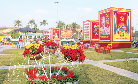 Thành phố Thái Bình rực rỡ cờ hoa chào mừng kỷ niệm 93 năm ngày thành lập Đảng.