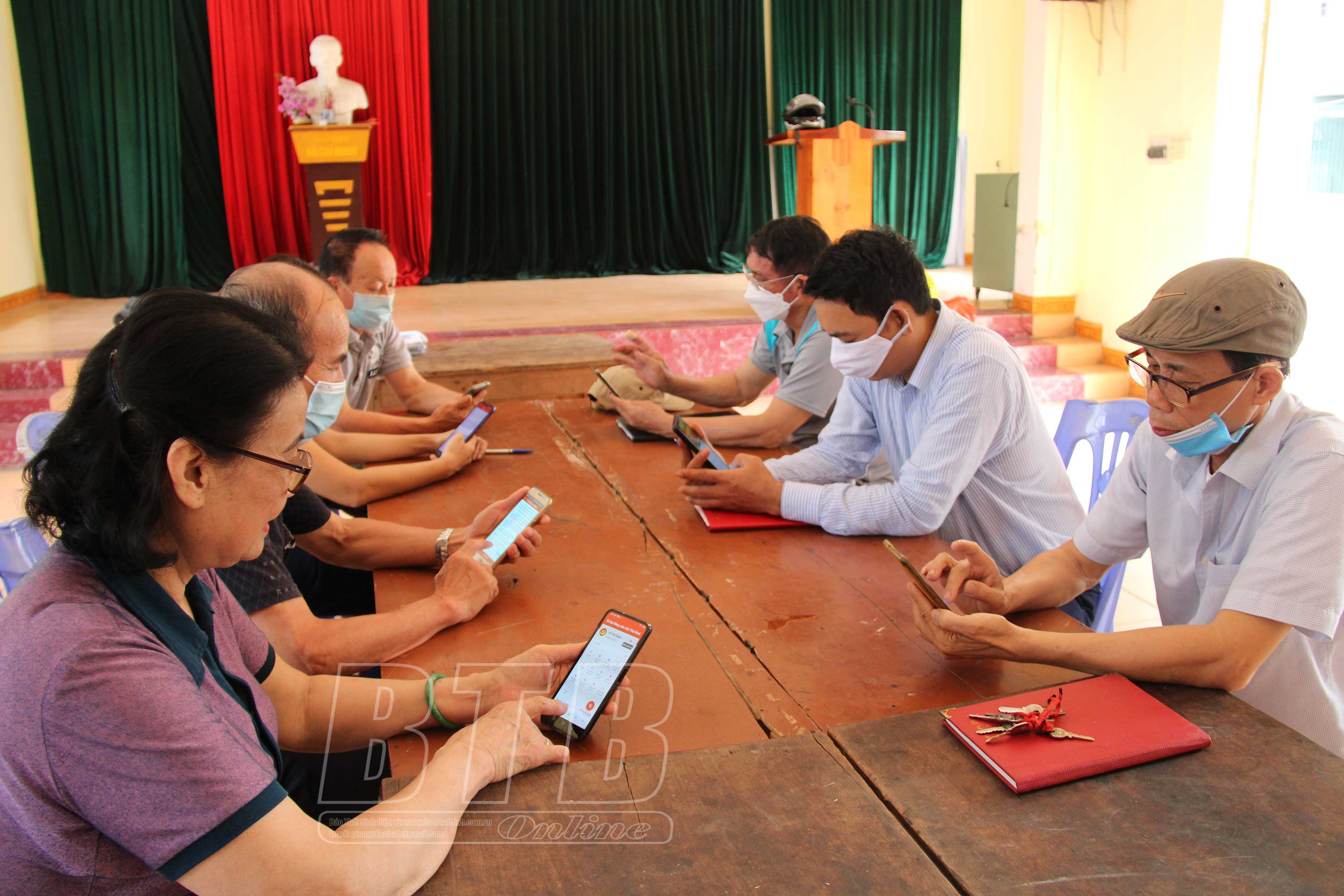 Chi bộ tổ 2, thị trấn Đông Hưng sinh hoạt đảng qua phần mềm Sổ tay đảng viên điện tử.