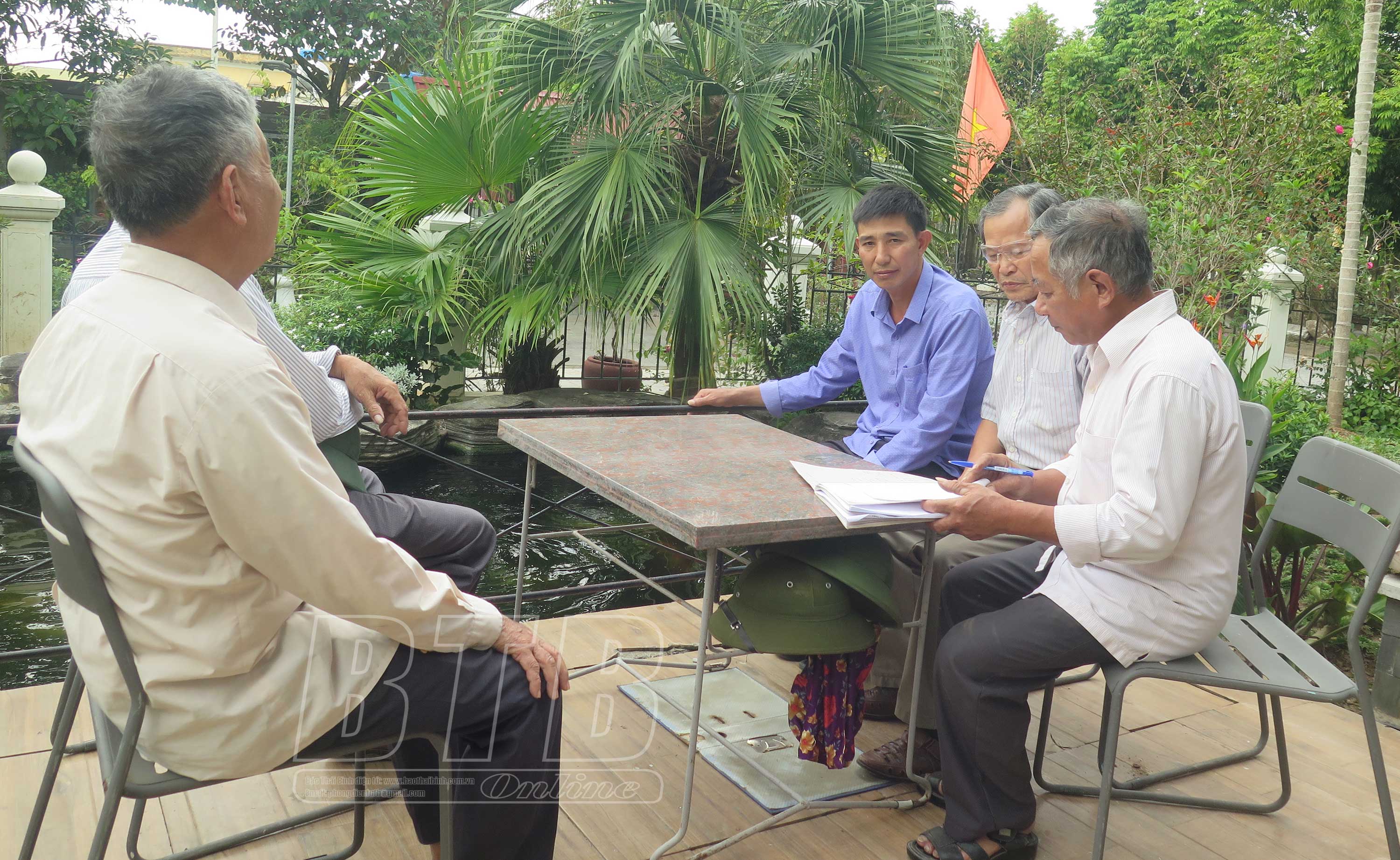 Lãnh đạo Chi bộ thôn An Cơ Bắc đến tuyên truyền vận động các hộ dân thực hiện tốt nhiệm vụ xây dựng nông thôn mới nâng cao.