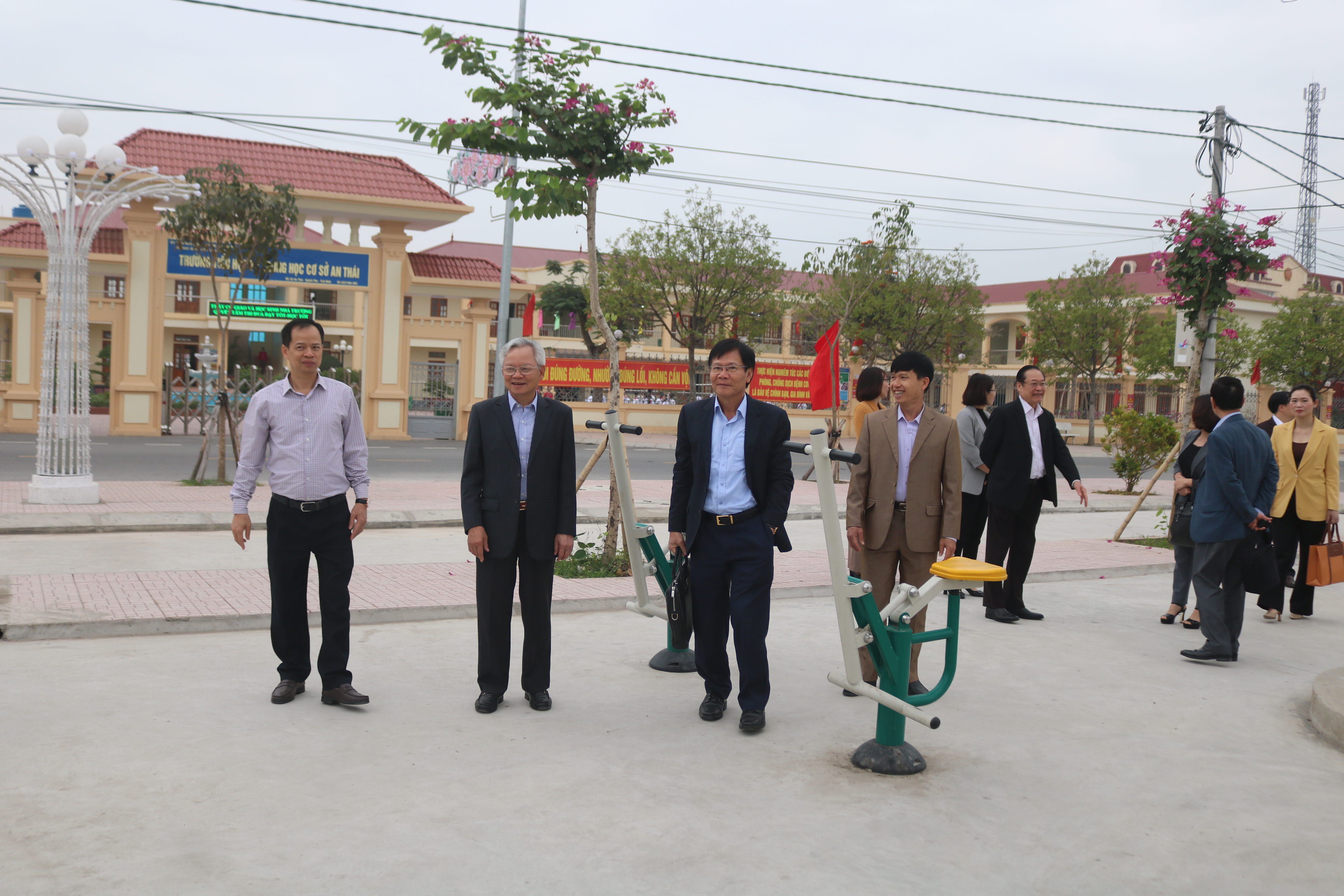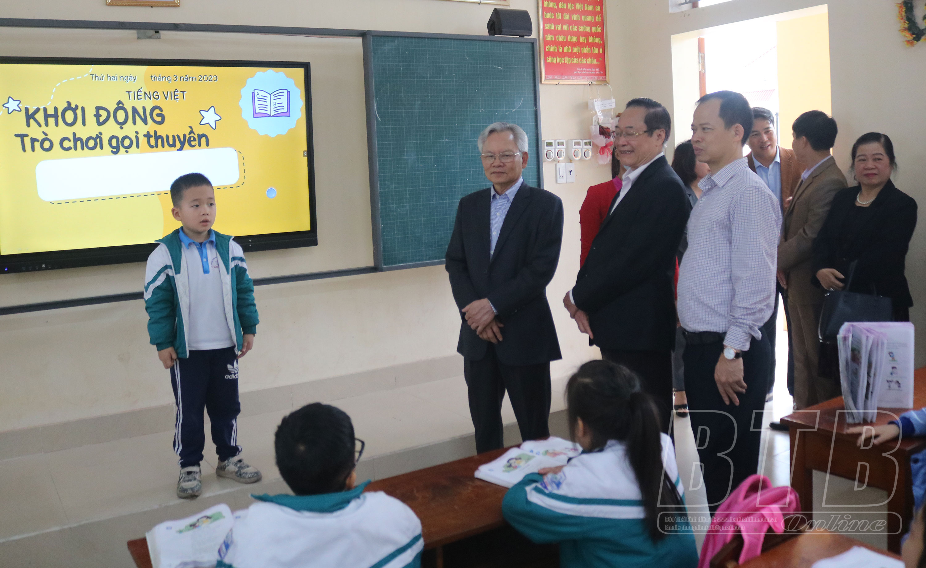 Đoàn công tác Hội đồng lý luận Trung ương thăm Trường Tiểu học và THCS An Thái (Quỳnh Phụ).
