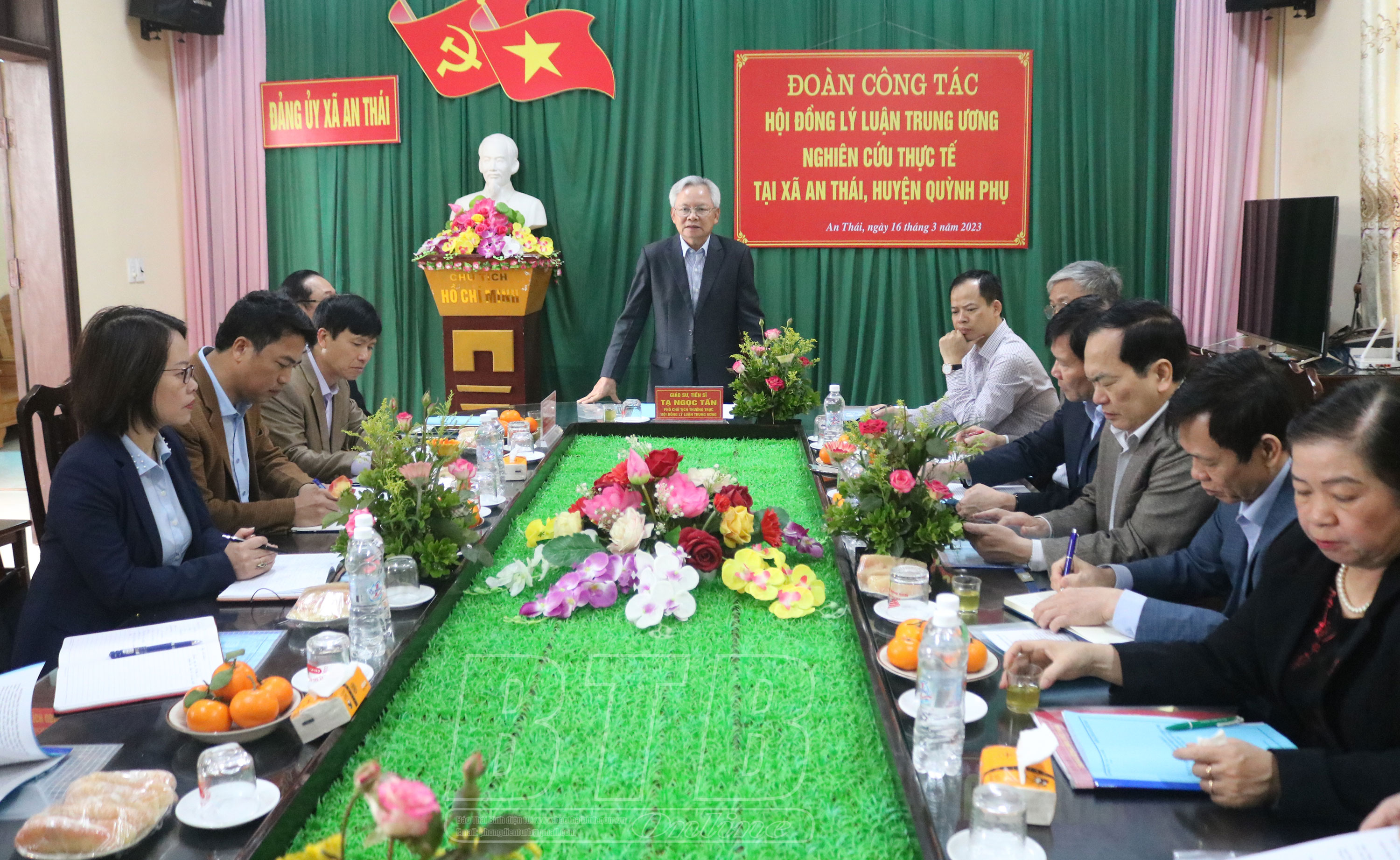 Trước đó, trong buổi sáng cùng ngày, đoàn công tác của Hội đồng lý luận Trung ương đã đến thăm và làm việc với Đảng ủy xã An Thái (Quỳnh Phụ) về một số nội dung: tình hình phát triển kinh tế - xã hội, công tác xây dựng Đảng, công tác chính quyền, cải cách hành chính...