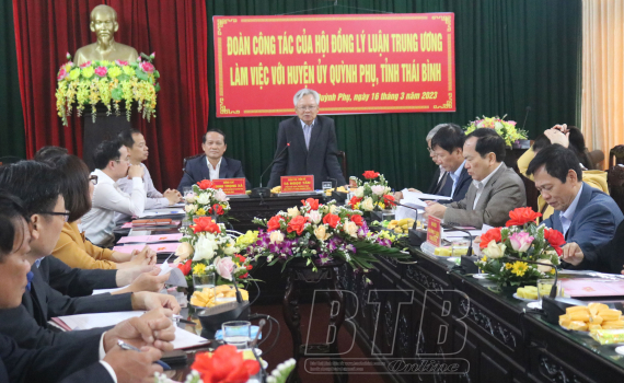 Đoàn công tác của Hội đồng lý luận Trung ương làm việc với Huyện ủy Quỳnh Phụ
