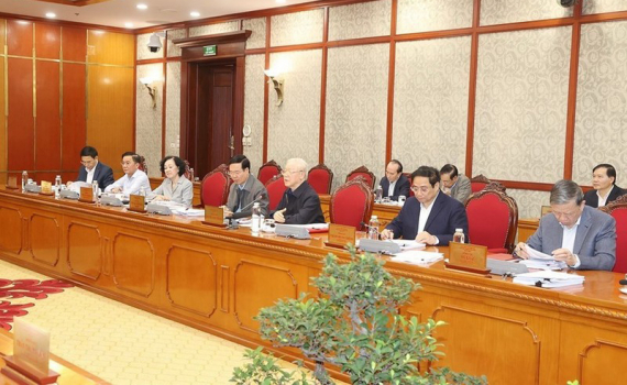 Tổng Bí thư Nguyễn Phú Trọng phát biểu kết luận cuộc họp. (Ảnh: Trí Dũng/TTXVN).