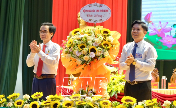 Lãnh đạo Hội Nông dân tỉnh chúc mừng Đại hội đại biểu Hội Nông dân huyện Thái Thụy.