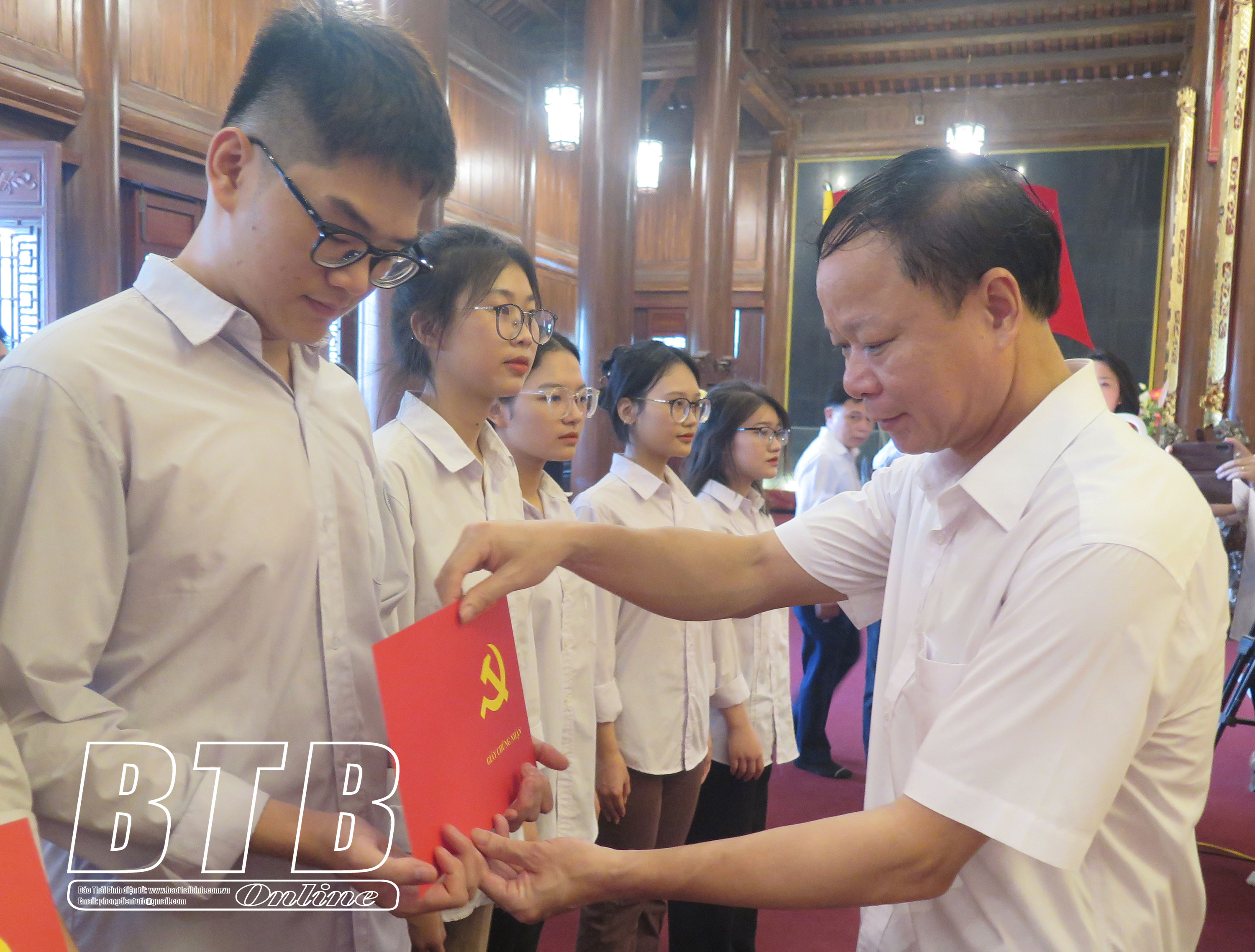 Lãnh đạo Đảng ủy Khối các cơ quan tỉnh trao giấy chứng nhận hoàn thành chương trình bồi dưỡng nhận thức về Đảng cho các học sinh Trường THPT Chuyên Thái Bình.
