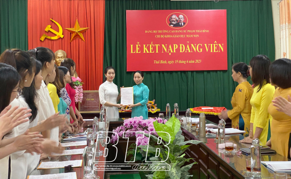 Bà Nguyễn Thị Thu Hà, Phụ trách Khoa Giáo dục phổ thông và Bồi dưỡng giáo viên, Trường Cao đẳng Sư phạm Thái Bình cho biết: Đảng ủy đã ban hành những hướng dẫn về các điều kiện, tiêu chuẩn kết nạp Đảng cho học sinh, sinh viên, trong đó yêu cầu các em không chỉ đạt kết quả học tập, hạnh kiểm tốt mà còn phải có nhiều thành tích trong các hoạt động phong trào của nhà trường. Để tạo điều kiện cho các em được đứng trong hàng ngũ của Đảng, Đảng ủy đã phân công nhiệm vụ cho bí thư chi bộ, đảng viên theo dõi giúp đỡ học sinh, sinh viên trong quá trình phấn đấu. Kết quả, hàng năm Đảng ủy nhà trường đã tổ chức kết nạp từ 6 - 10 đảng viên là học sinh, sinh viên. Đặc biệt năm 2023, Đảng ủy đã tổ chức kết nạp 10 học sinh, sinh viên, trong đó 8 sinh viên trình độ cao đẳng, 2 học sinh trình độ trung cấp đối tượng học sinh tốt nghiệp trung học cơ sở. Đây là dấu mốc đáng nhớ của nhà trường bởi đã có các em học sinh 18 tuổi đứng trong hàng ngũ vinh quang của Đảng.