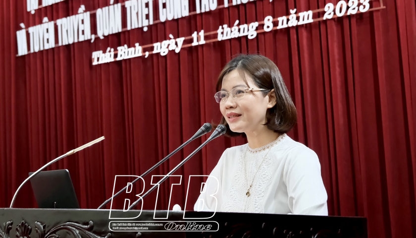 Lãnh đạo Ban Nội chính Tỉnh ủy truyền đạt các nội dung về công tác phòng, chống tham nhũng, tiêu cực tại hội nghị.