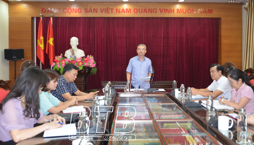 Đồng chí Nguyễn Minh Hồng, Tỉnh ủy viên, Phó Trưởng ban Tuyên giáo Tỉnh ủy phát biểu tại cuộc họp.