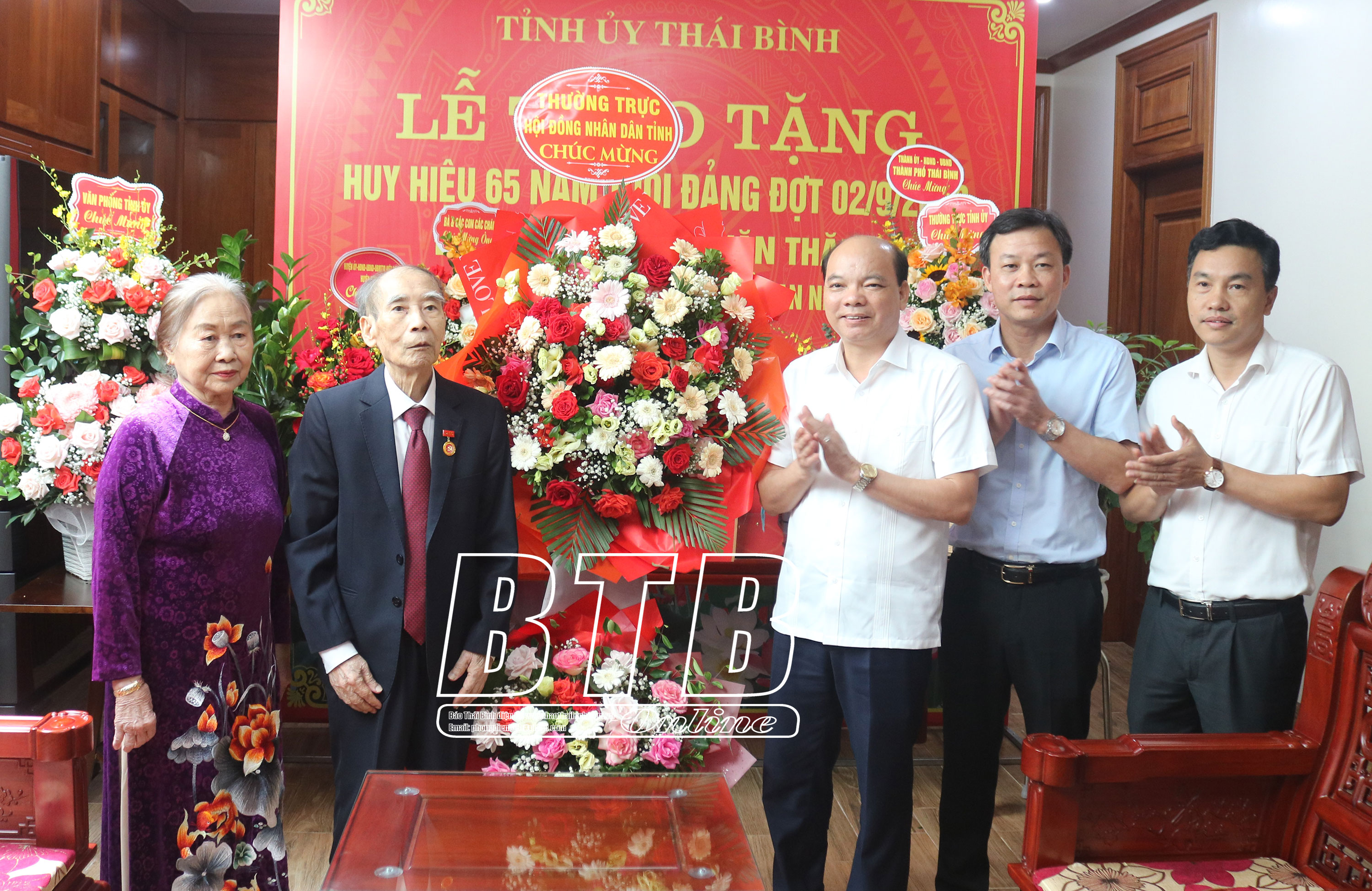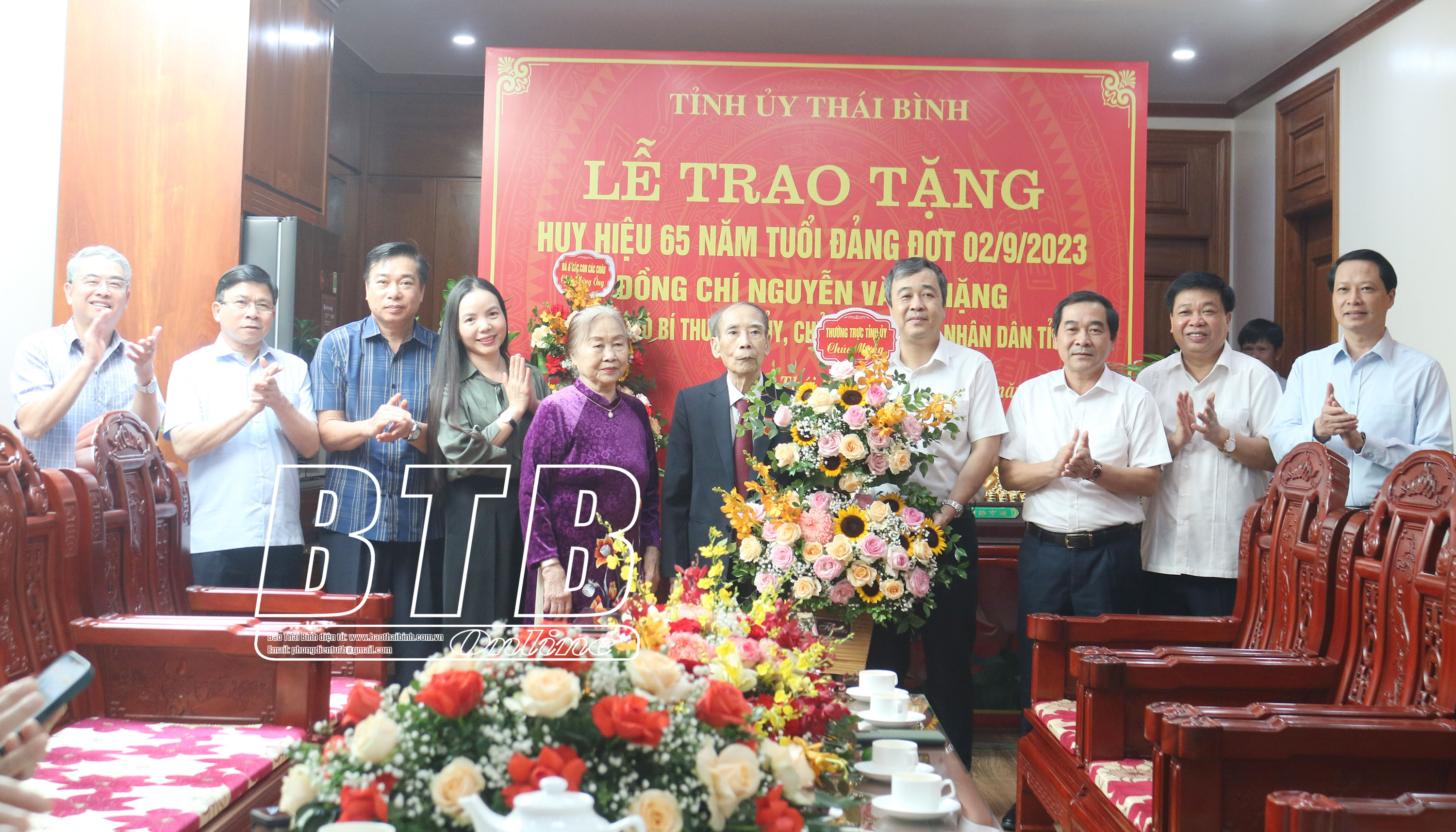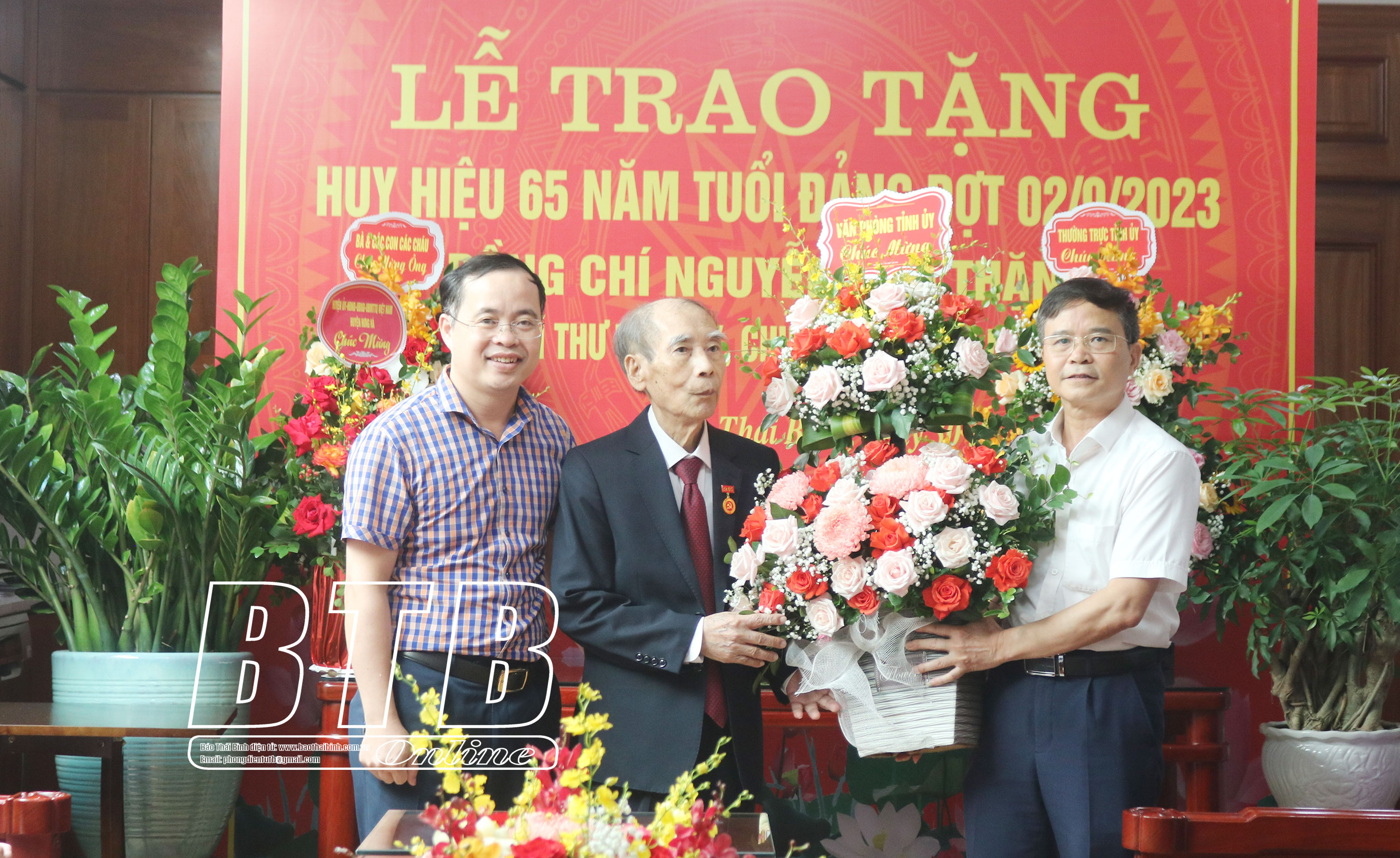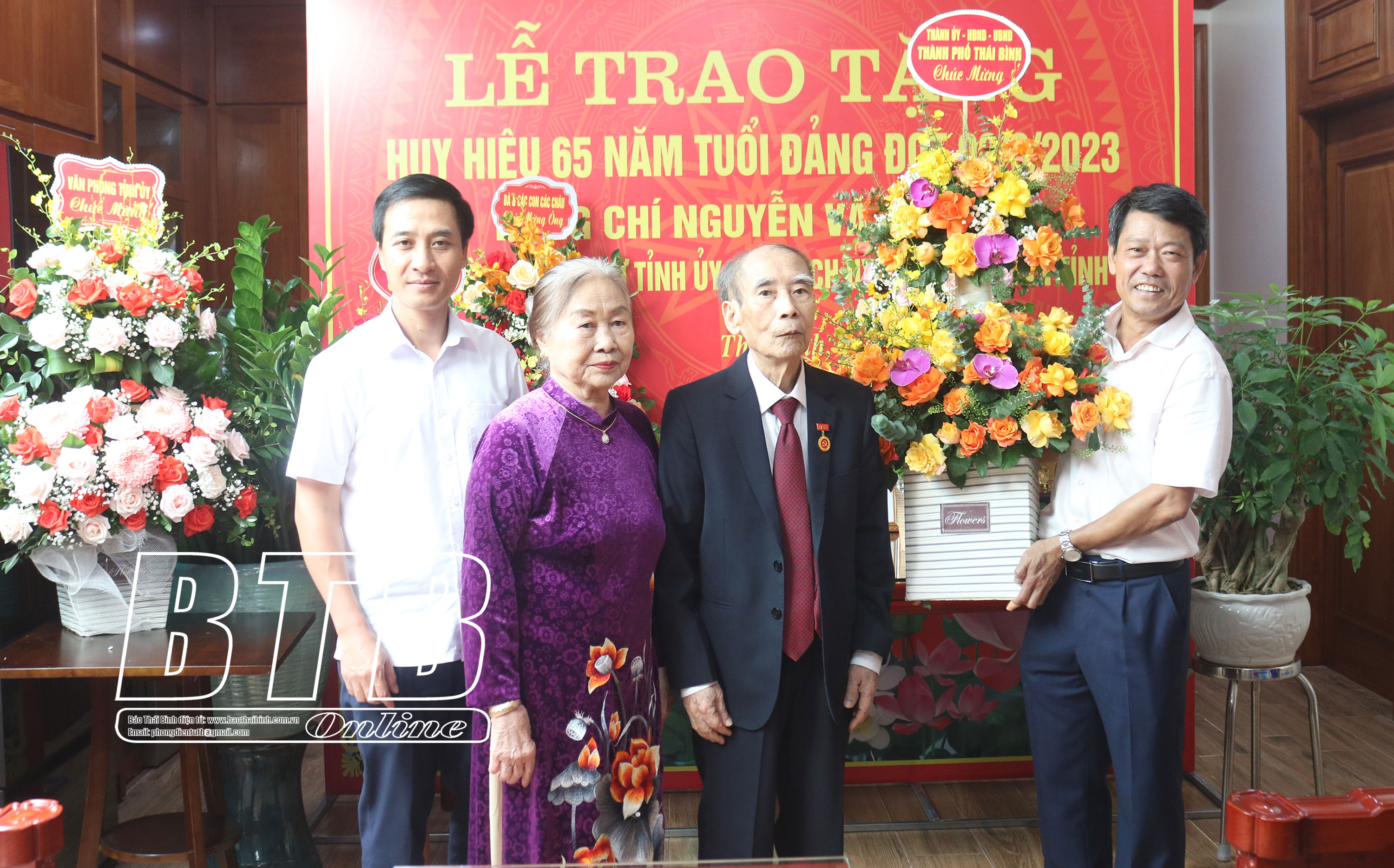 Lãnh đạo Thành ủy Thái Bình tặng hoa chúc mừng.