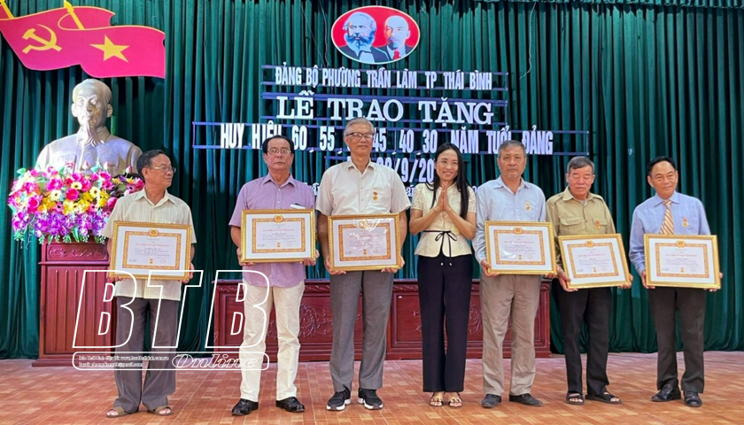 Trao tặng huy hiệu Đảng cho các đảng viên đợt 2/9/2023 tại Đảng bộ phường Trần Lãm, thành phố Thái Bình.
