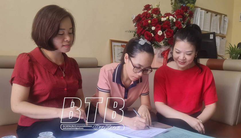 Chi bộ Trường Mầm non Đề Thám hướng dẫn quần chúng hoàn tất thủ tục đề nghị kết nạp đảng viên.