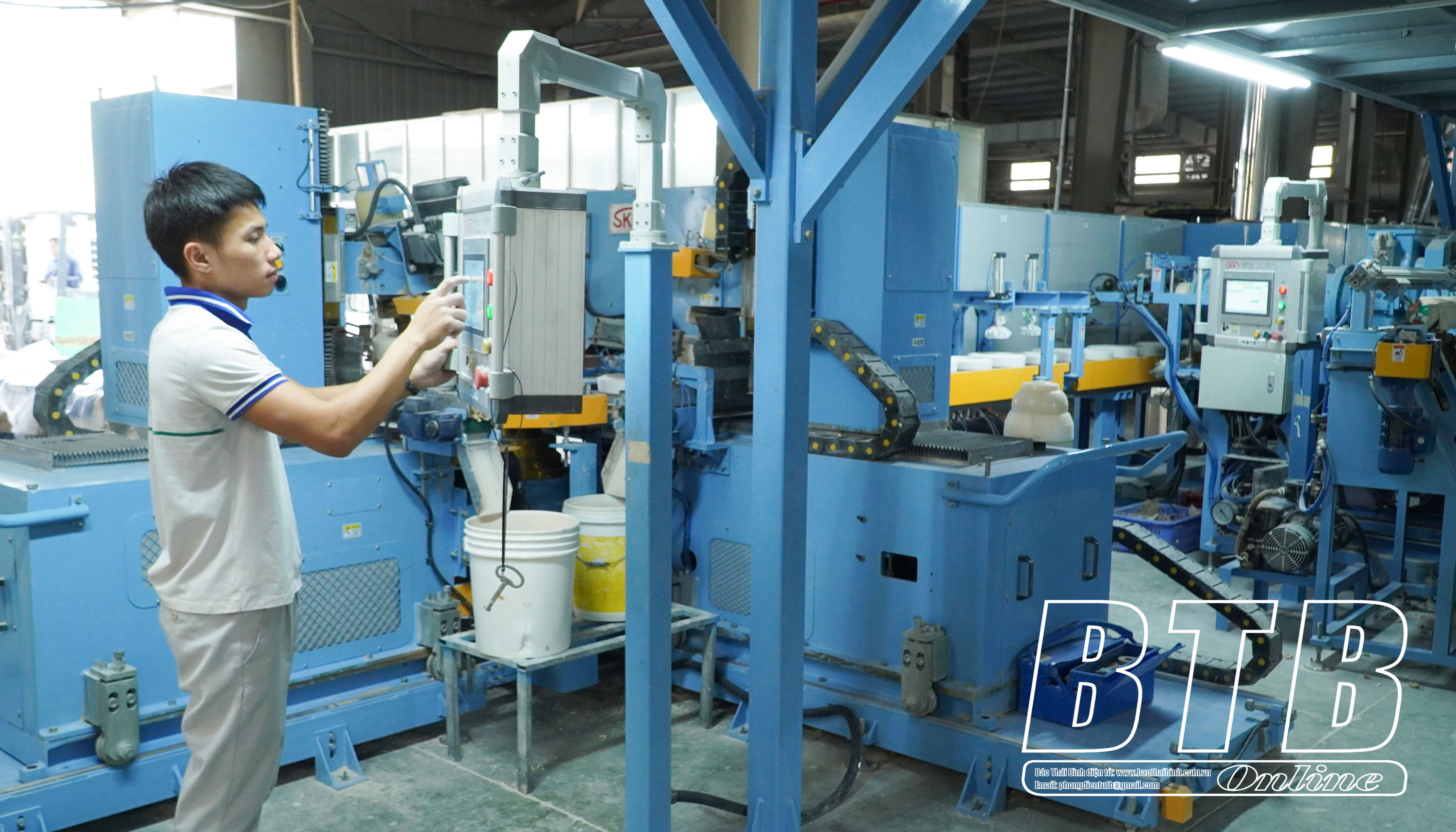 Sản xuất sứ trên dây chuyền tự động của Công ty Cổ phần Gốm sứ Long Hầu (khu công nghiệp Tiền Hải).