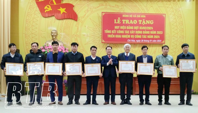 Trao tặng Huy hiệu Đảng cho các đảng viên đợt 3/2/2024 tại Đảng bộ xã Chí Hòa (Hưng Hà).