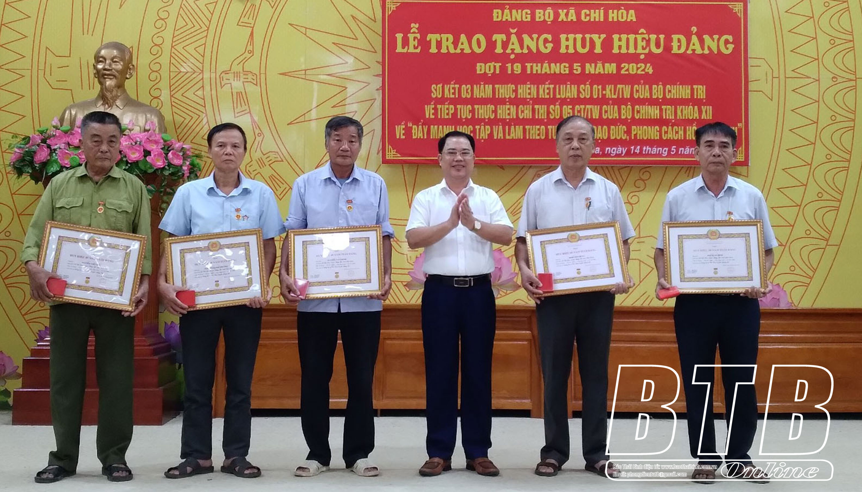 Đảng bộ xã Chí Hòa trao tặng Huy hiệu cho các đảng viên cao tuổi đảng.