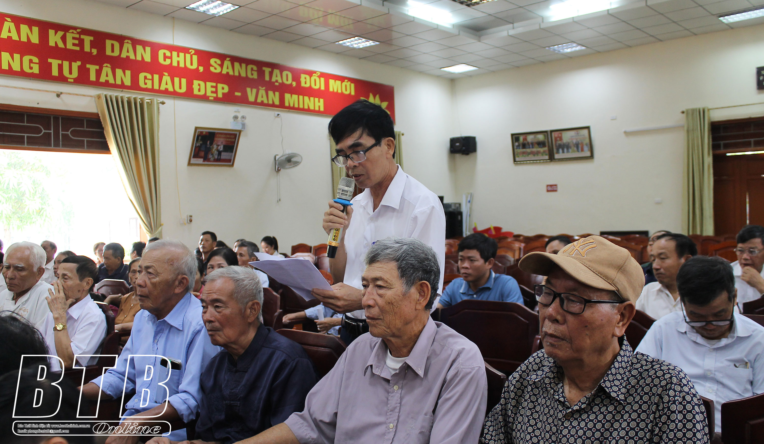 Tại buổi đối thoại, đã có 14 lượt ý kiến của 9 cá nhân, tập trung ở các nội dung: Lĩnh vực đất đai, giải phóng mặt bằng, sản xuất nông nghiệp, xây dựng nông thôn mới nâng cao, bảo đảm vệ sinh môi trường, xây dựng Đảng. Cụ thể, các ý kiến phản ánh việc cấp giấy chứng nhận quyền sử dụng đất tại một số bộ phận của huyện còn khó khăn, tiến độ chậm; việc lập phương án bồi thường, hỗ trợ, bố trí tái định cư đối với các hộ bị thu hồi đất ở, giải phóng mặt bằng thực hiện dự án xây dựng tuyến đường vành đai phía Nam thành phố Thái Bình chậm; việc thi công tuyến đường vành đai phía Nam qua địa bàn xã gây ách tắc dòng chảy, ngập úng cục bộ, thay đổi chất đất, ảnh hưởng lớn đến sản xuất nông nghiệp ở các xứ đồng liền kề; đề nghị tỉnh tiếp tục hỗ trợ xi măng để nâng cấp các tuyến đường giao thông nông thôn đã cứng hóa nhưng xuống cấp; việc vận chuyển, khai thác, kinh doanh vật liệu xây dựng của các cơ sở bến bãi ven sông Hồng gây ô nhiễm môi trường, ảnh hưởng giao thông, sinh hoạt của người dân; quan tâm công tác tổ chức xây dựng Đảng, phát triển đảng viên ở cơ sở…