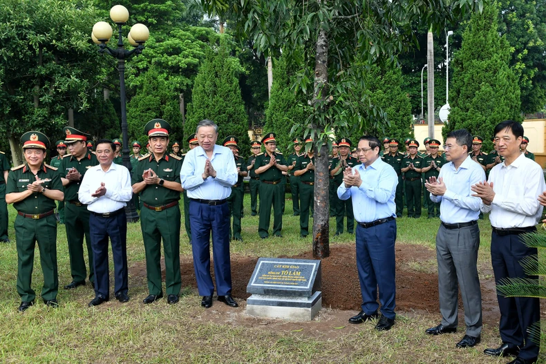 * Trước khi làm việc, Tổng Bí thư, Chủ tịch nước Tô Lâm; Thủ tướng Chính phủ Phạm Minh Chính cùng Đoàn công tác và Lãnh đạo Bộ Quốc phòng đã trồng cây lưu niệm trong khuôn viên Trụ sở Bộ Quốc phòng.