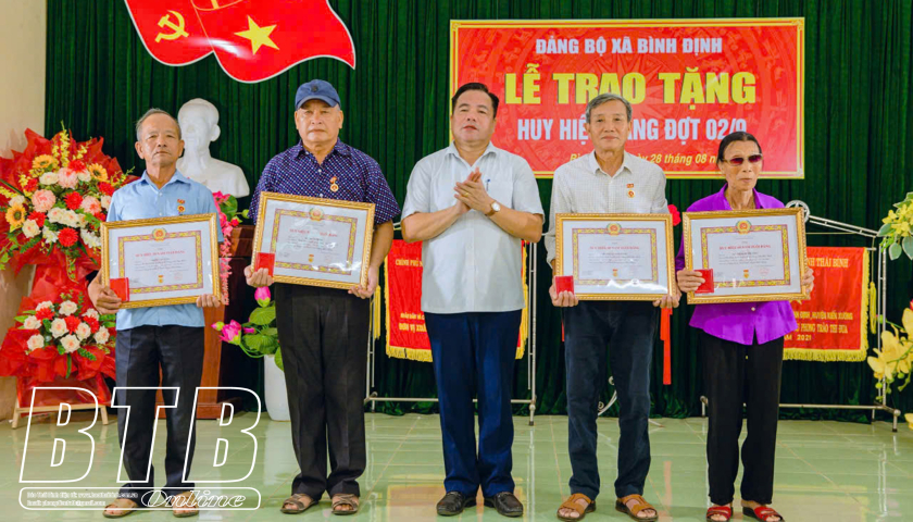 Theo đó có 9 đảng viên nhận huy hiệu 70 năm tuổi đảng, 1 đảng viên nhận huy hiệu 65 năm tuổi đảng, 36 đảng viên nhận huy hiệu 60 năm tuổi đảng, 64 đảng viên nhận huy hiệu 55 năm tuổi đảng; 48 đảng viên nhận huy hiệu 50 năm tuổi đảng; còn lại là các đảng viên nhận huy hiệu 45 năm, 40 năm, 30 năm tuổi đảng.