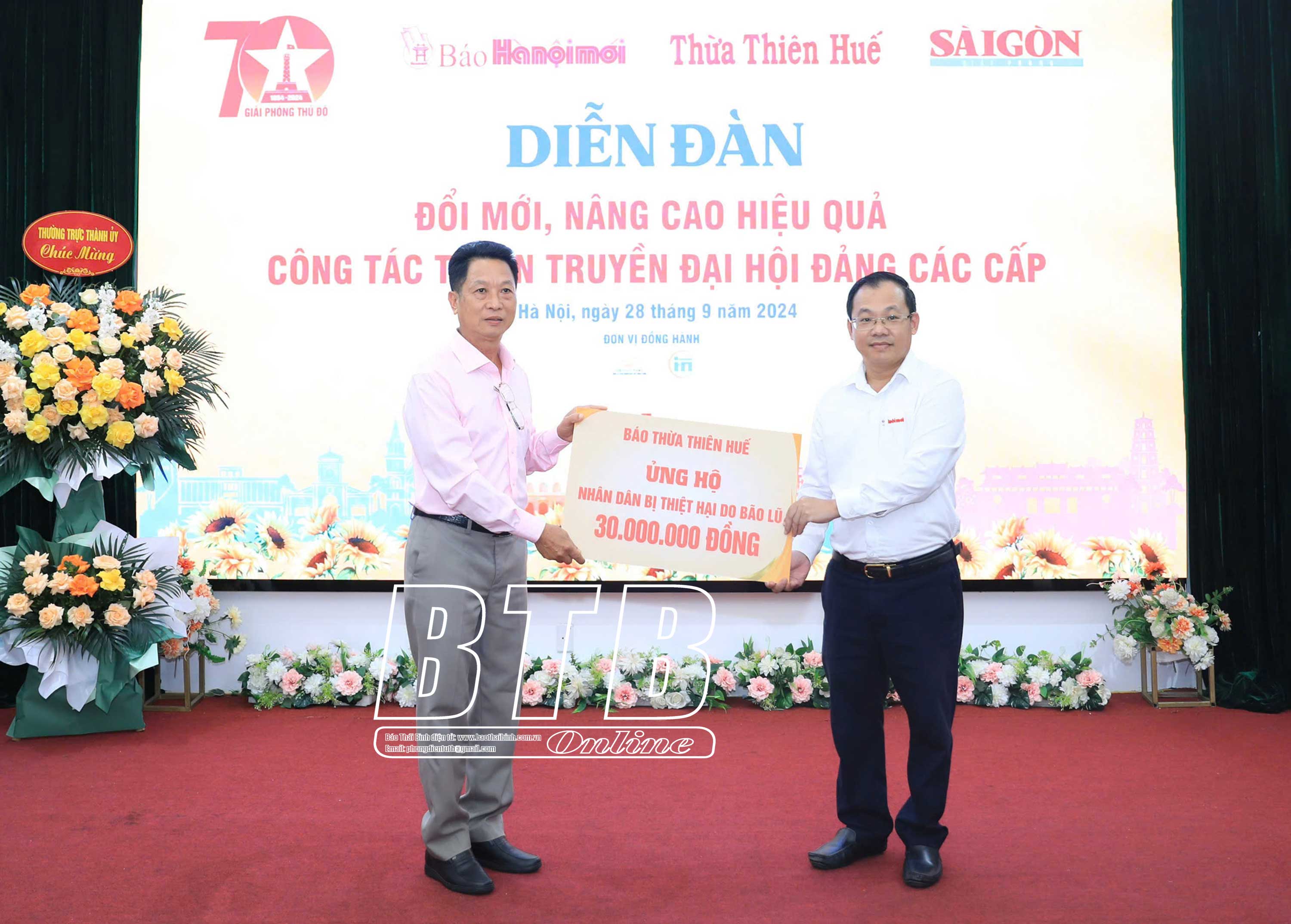 Báo Thừa Thiên Huế gửi đến đồng bào bị thiệt hại do cơn bão số 3 thông qua Quỹ Trái tim nhân ái của Báo Hànộimới số tiền 30 triệu đồng.