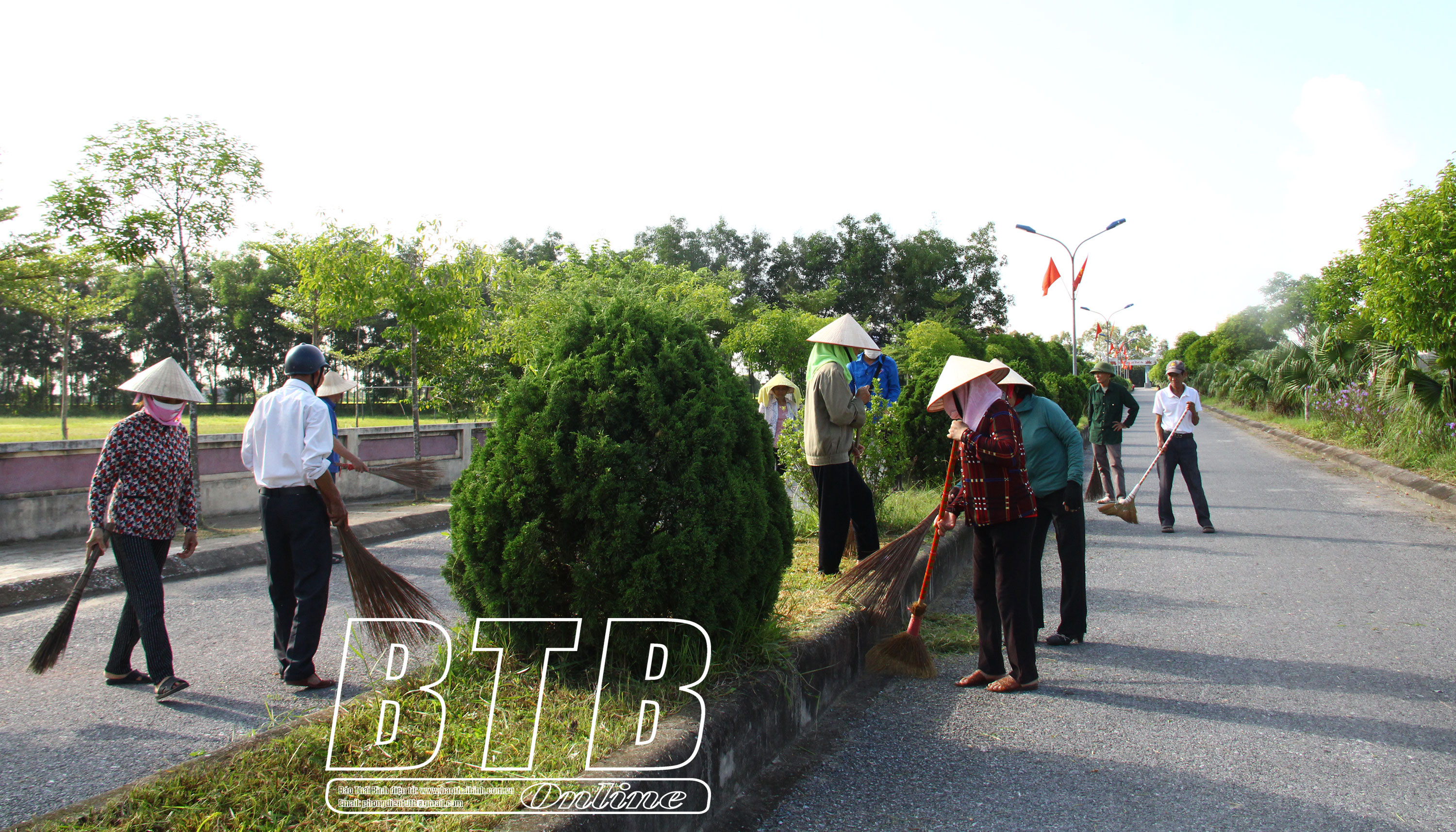 Ngày 24 hàng tháng, về thôn Kim Châu 2, xã An Châu, chúng ta sẽ gặp các đảng viên cùng nhân dân cắt cỏ, quét dọn, trồng và tưới cây để làm sạch, đẹp các tuyến đường trong thôn.
