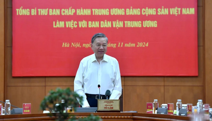 Về phương hướng công tác dân vận trong thời gian tới, Tổng Bí thư yêu cầu tập trung làm tốt một số nội dung. Một là, thống nhất nhận thức về tầm quan trọng đặc biệt và yêu cầu đổi mới mạnh mẽ công tác dân vận ngang tầm nhiệm vụ trong giai đoạn cách mạng mới nhằm huy động sức mạnh vô địch của nhân dân, đưa đất nước vững bước vào kỷ nguyên mới, kỷ nguyên vươn mình của dân tộc.