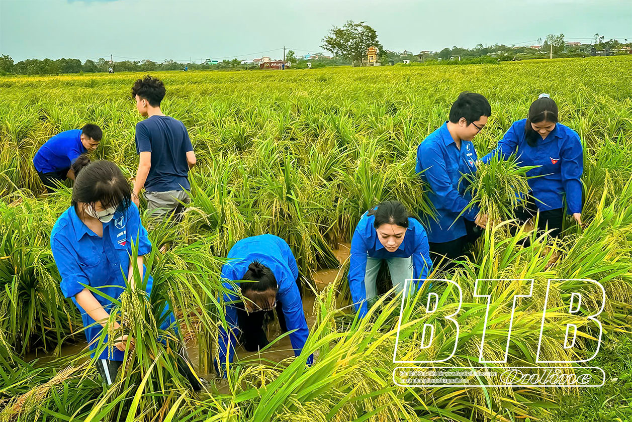 Các hoạt động sôi nổi tạo môi trường để sinh viên rèn luyện, khẳng định bản thân. Trong ảnh: Sinh viên hỗ trợ nông dân Hưng Hà cứu lúa khỏi mưa úng sau bão số 3 năm 2024.