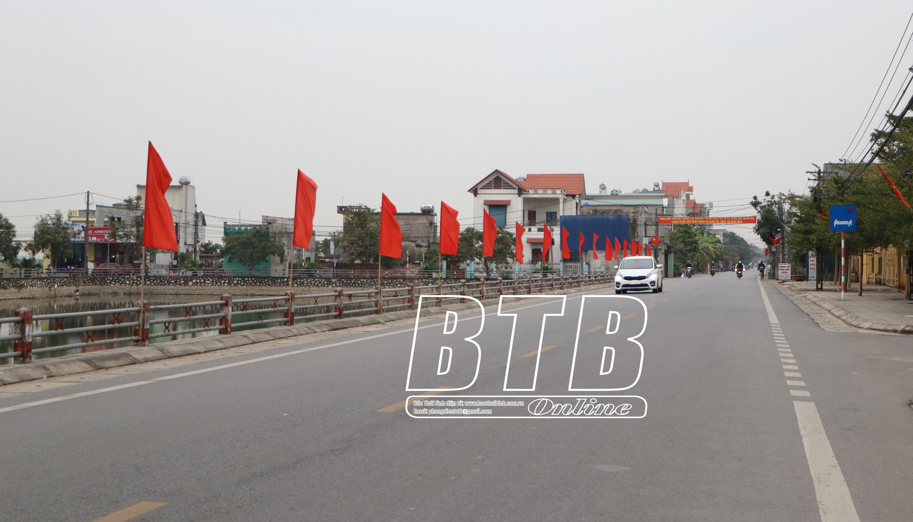 Xã Vũ Lễ (Kiến Xương) cờ hoa rực rỡ chào mừng đại hội đảng bộ các cấp nhiệm kỳ 2025 - 2030.