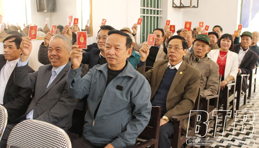 Đảng viên Chi bộ thôn Năng An, xã Vũ Hội (Vũ Thư) biểu quyết thông qua nghị quyết, trong đó có mục tiêu phấn đấu xây dựng chi bộ đạt chi bộ kiểu mẫu trong nhiệm kỳ 2025 - 2027.
