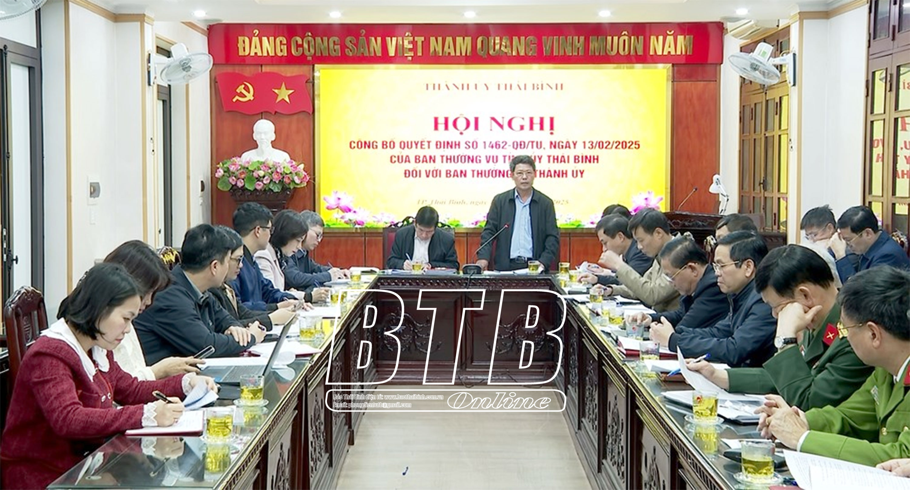 Chiều ngày 17/2, đoàn kiểm tra của Tỉnh ủy do đồng chí Phạm Văn Tuân, Ủy viên Ban Thường vụ, Trưởng ban Tổ chức Tỉnh ủy làm trưởng đoàn đã có buổi làm việc với Thành ủy Thái Bình. Đồng chí Hoàng Văn Thành, Ủy viên Ban Thường vụ Tỉnh ủy, Bí Thư Thành ủy, Chủ tịch HĐND thành phố dự buổi làm việc.