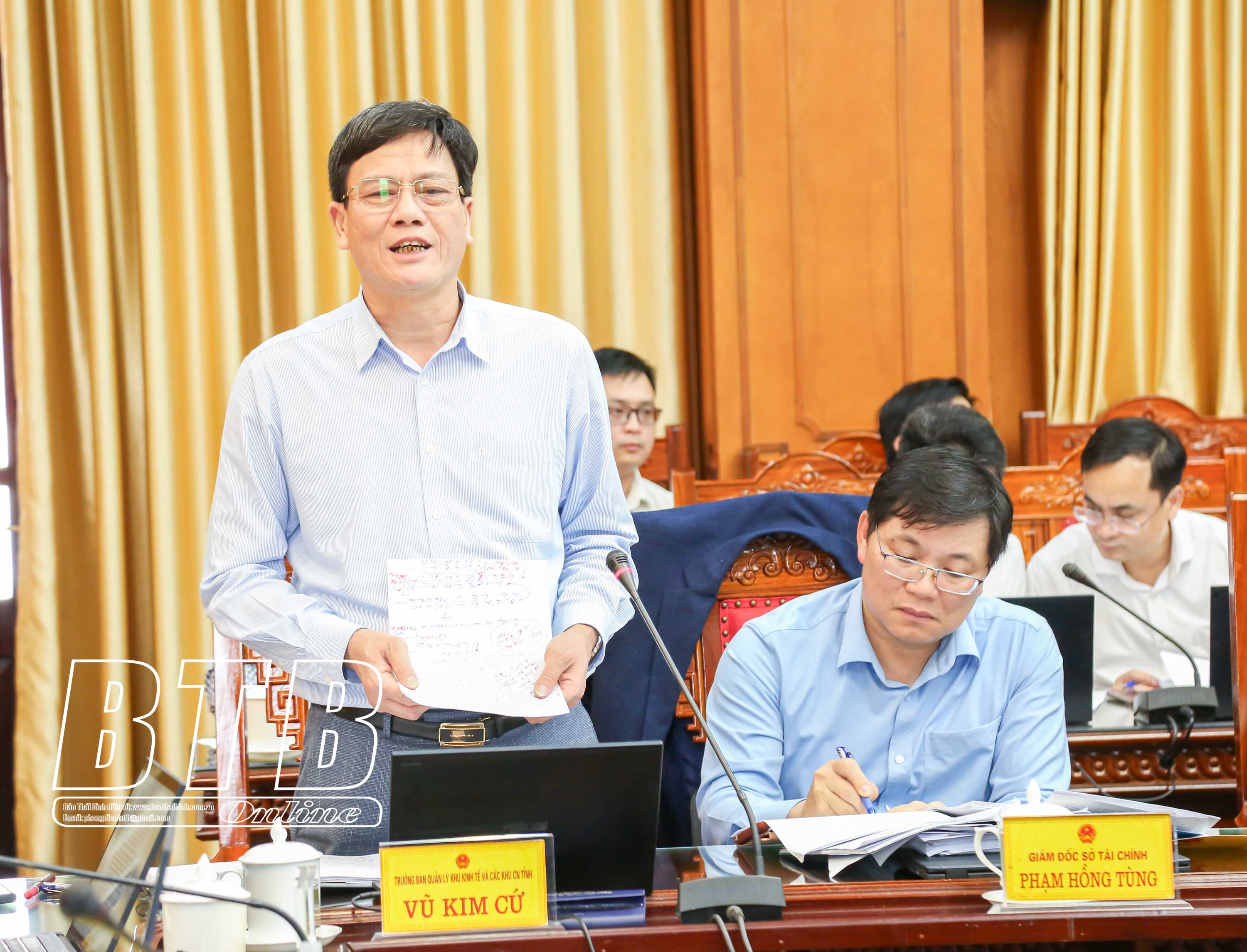 Đồng chí Vũ Kim Cứ, Ủy viên Ban Thường vụ Tỉnh ủy, Trưởng ban Quản lý Khu kinh tế và các khu công nghiệp tỉnh phát biểu tại hội nghị.