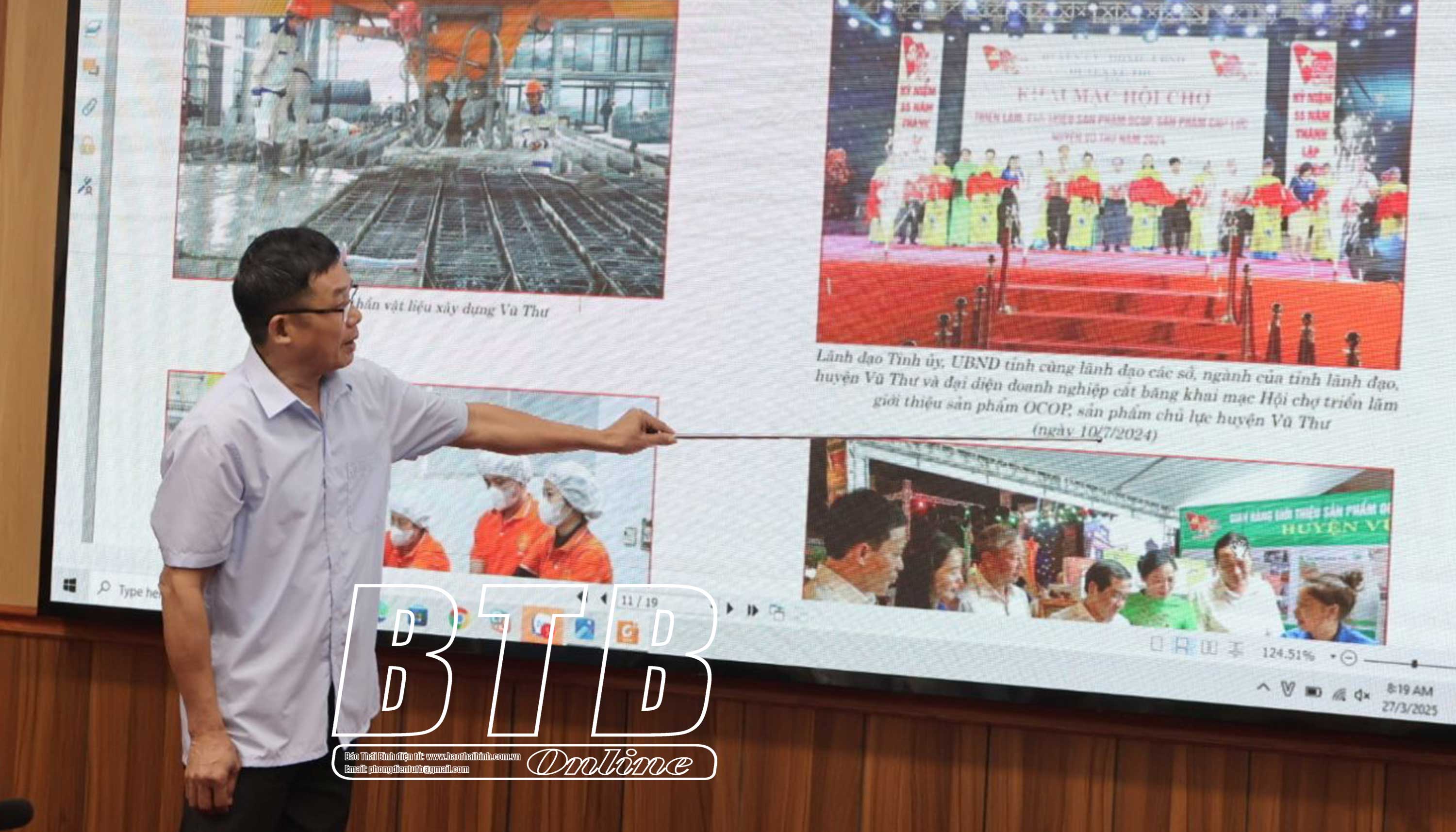 Đại diện đơn vị tư vấn giới thiệu hình thức, nội dung, bố cục cuốn Lịch sử Đảng bộ huyện Vũ Thư giai đoạn 2005 - 2025.