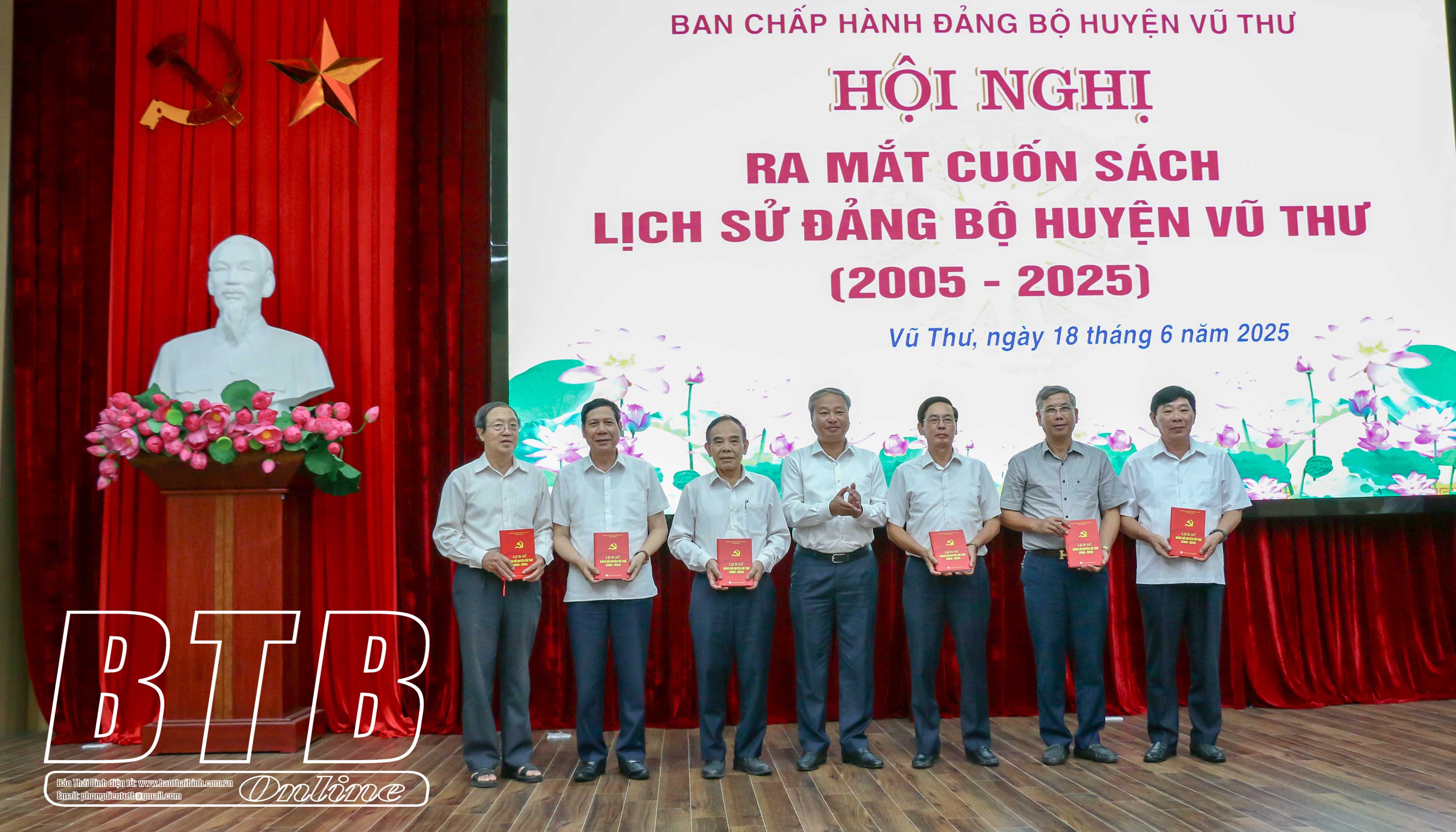 Sáng ngày 18/6, Ban Chấp hành Đảng bộ huyện Vũ Thư tổ chức hội nghị ra mắt cuốn sách Lịch sử Đảng bộ huyện Vũ Thư (2005 - 2025). Tới dự có các đồng chí: Nguyễn Tiến Thành, Phó Bí thư thường trực Tỉnh ủy, Chủ tịch HĐND tỉnh; Đặng Thanh Giang, Ủy viên Ban Thường vụ Tỉnh ủy, Phó Chủ tịch thường trực HĐND tỉnh; Phạm Đồng Thụy, Ủy viên Ban Thường vụ, Trưởng ban Tuyên giáo và Dân vận Tỉnh ủy.