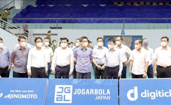 Phó Thủ tướng Chính phủ Vũ Đức Đam kiểm tra công tác chuẩn bị phục vụ SEA Games 31 tại Nhà thi đấu Bắc Giang. Ảnh: Đồng Thúy-TTXVN.
