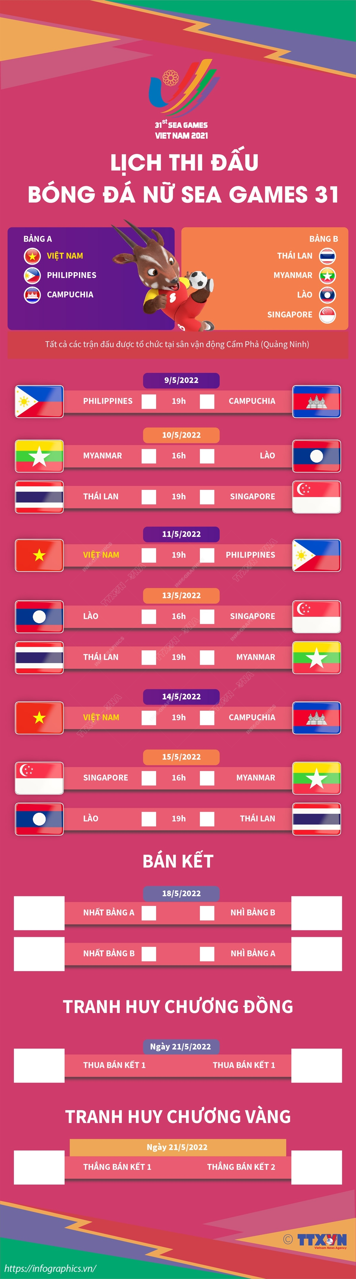 Lịch thi đấu bóng đá nữ SEA Games 31