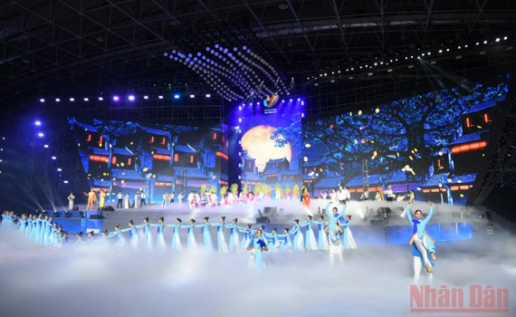 Lời "giã bạn" của nước chủ nhà SEA Games 31 - Việt Nam - bằng chùm bài hát Quan họ - Di sản phi vật thể thế giới được UNESCO công nhận - với những làn điệu: Mời trầu, Giã bạn và Người ơi người ở đừng về, qua phần trình bày của 100 nghệ sĩ dân ca quan họ Bắc Ninh.