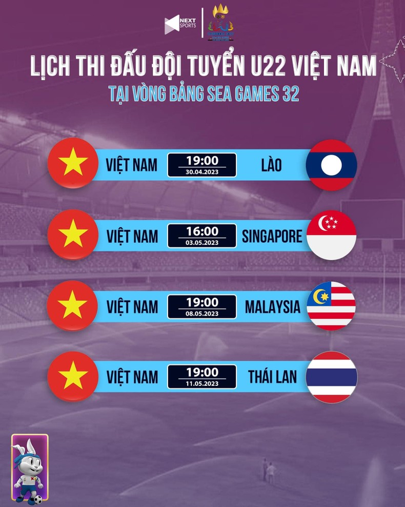 Thầy trò huấn luyện viên Troussier sẽ bắt đầu chiến dịch SEA Games 32 tại Campuchia bằng trận đấu với U22 Lào vào ngày 30/4, cuối cùng kết thúc vòng bảng với trận gặp U22 Thái Lan ngày 11/5.