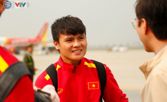 ĐT Việt Nam thu hút sự quan tâm của báo chí ngay khi đặt chân xuống sân bay Nội Bài