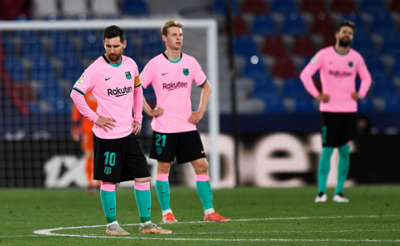 Trận hoà 3-3 trước Levante ở vòng 36 La Liga khiến Barca không thể chiếm ngôi đầu bảng của Atletico Madrid và đứng trước nguy cơ bị loại khỏi cuộc đua vô địch.