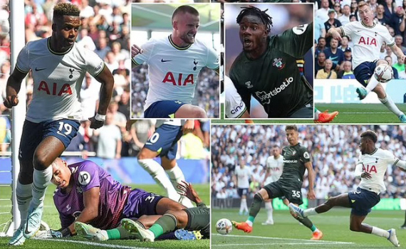 Chung cuộc: Tottenam 4-1 Southampton Ghi bàn: Sessegnon 21, Dier 31, Salissu OG 61, Kulusevski 73 - Ward-Prowse 12 Danh sách thi đấu: Spurs 3-4-3: Lloris 6; Romero 6.5, Dier 7.5, Davies 7 (Lenglet 86); Royal 7 (Doherty 86), Hojbjerg 6.5, Bentancur 7 (Bissouma 86), Sessegnon 8 (Perisic 66, 6); Kulusevski 7.5 (Moua 86), Kane 6, Son 6. Southampton 3-5-2: Bazunu 5.5; Valery 6 (Stephens 46, 6), Bednarek 6, Salisu 5; Walker-Peters 6 (Redmond 90+), Ward-Prowse 6.5, Lavia 6.5, Romeu 6 (Diallo 75, 5), Djenepo 6 (Perraud 72, 5); Aribo 6, A Armstrong 5 (S Armstrong 46, 5). |