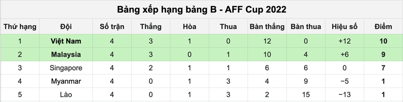 Kết quả chung cuộc bảng B - AFF Cup 2022.