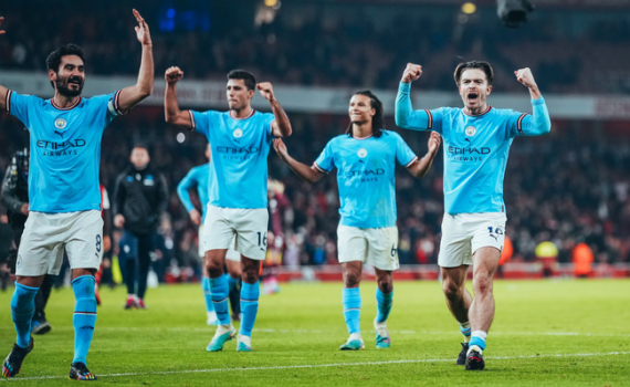 Manchester City giành chiến thắng 3-1 trước Arsenal và vươn lên ngôi đầu bảng ngoại hạng Anh. 2 đội có cùng 51 điểm nhưng thầy trò HLV Pep Guardiola xếp trên nhờ hơn hiệu số.