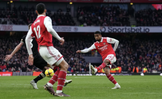 Cho đến hết phút bù thứ sáu - bằng đúng thời gian trọng tài bàn thông báo trước đó, tỷ số trên sân Emirates vẫn là 2-2. Arsenal tưởng như chắc chắn phải chia điểm với đội áp chót, và nếu thế cách biệt giữa họ với Man City sẽ thu hẹp còn ba điểm. Nhưng bất ngờ xảy ra. Từ quả phạt góc của thủ quân Martin Odegaard, bóng được phá đến đúng vị trí của Reiss Nelson. Từ rìa cấm địa, cầu thủ vào thay người này đỡ hai nhịp rồi duỗi chân trái sút căng vào góc cao phía xa khung thành của Bournemouth, ấn định chiến thắng 3-2 cho Arsenal.