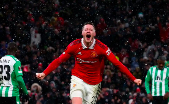 Tiền đạo Wout Weghorst mừng bàn ấn định thắng lợi 4-1 cho Man Utd trước Real Betis ở lượt đi vòng 1/8 Europa League tối 9/3/2023 trên sân Old Trafford, thành phố Manchester, Anh.