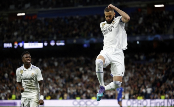 Sự cơ động của Kante giúp Chelsea áp đảo trong 10 phút đầu, trước khi Benzema cảnh cáo đội khách bằng pha qua người và dứt điểm đúng vị trí Kepa. Tiền đạo Pháp từng nhấn chìm Chelsea ở tứ kết mùa trước, với bốn bàn qua hai lượt trận. Mùa này, Benzema tiếp tục gieo sầu cho đội bóng thành London, bằng bàn mở tỷ số ở phút 21. Dani Carvajal chọc khe bổng thuận lợi cho Vinicius Jr thoát xuống dứt điểm một chạm, trước khi Benzema đá bồi thành bàn.