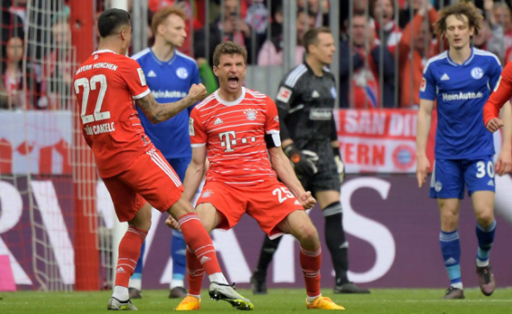 Nếu thủ môn Sepp Van Den Berg không kịp cản phá trên vạch vôi, Kingsley Coman có thể đã mở tỷ số cho Bayern ngay phút thứ 10. Nhưng đến phút 21, chủ nhà cũng có bàn đầu tiên. Leroy Sane chuyền từ giữa vòng cấm về phía sau, tạo điều kiện cho Thomas Muller cứa lòng từ khoảng cách 16 m vào góc xa. Ngôi sao 33 tuổi có bàn thứ 12 vào lưới Schalke. Trong sự nghiệp ở Bundesliga, đối thủ ưa thích nhất của anh là Wolfsburg với 13 bàn.