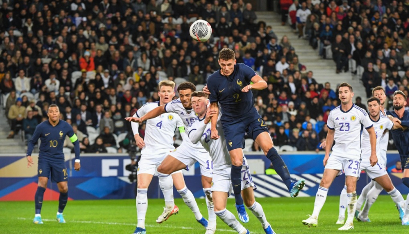 Pavard đánh đầu gỡ hòa 1-1 cho Pháp trong trận thắng ngược Scotland 4-1 trên sân Pierre Mauroy ngày 17/10
