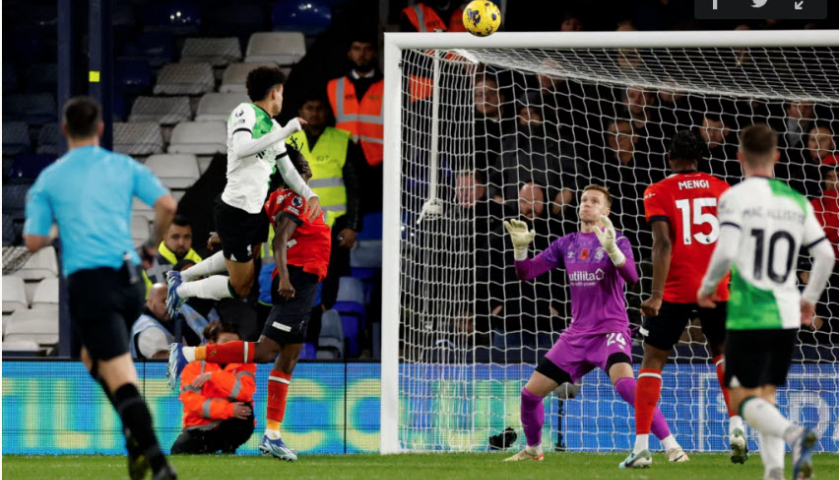 Diaz bật cao đánh đầu, giúp Liverpool giành một điểm nhọc nhằn trên sân Luton.