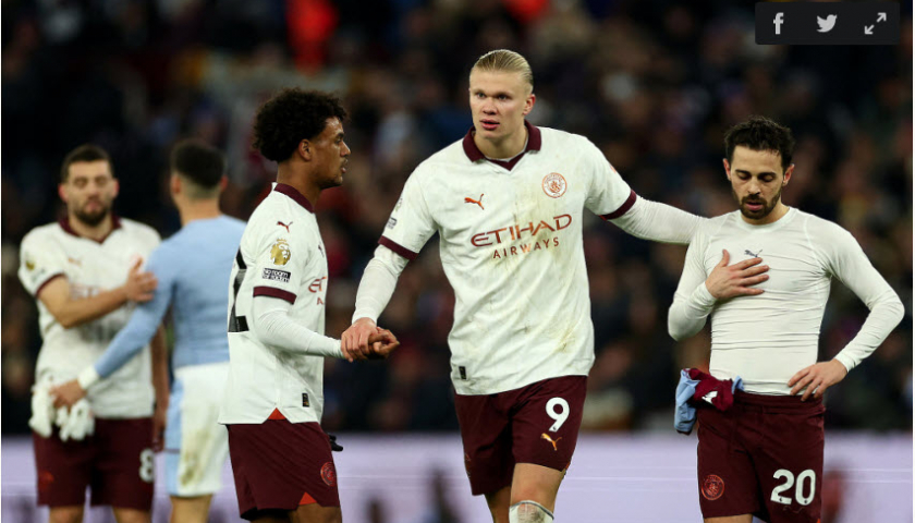 Erling Haaland cùng đồng đội thất vọng sau trận thua Villa